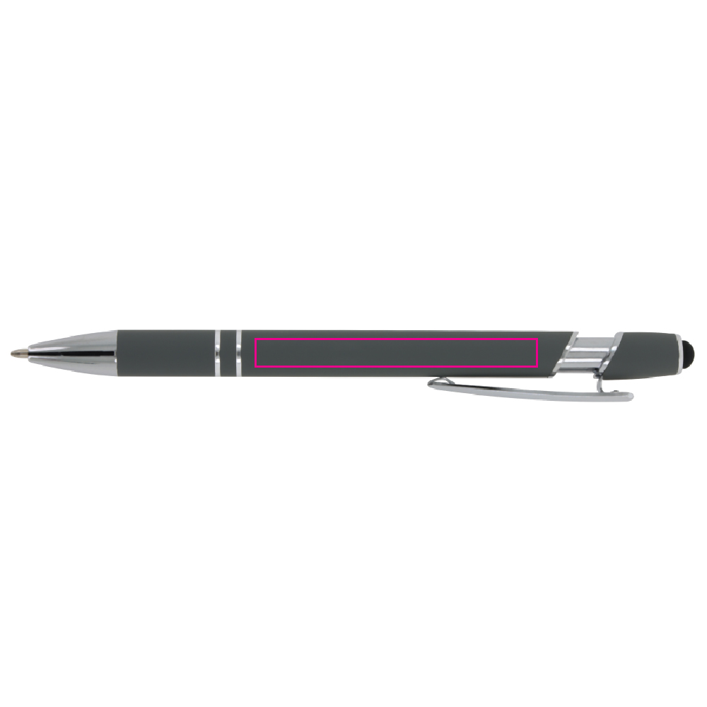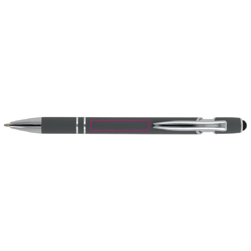 Kugelschreiber aus Aluminium mit elegantem Soft-Touch-Finish und Stylus. Mit massivem Metallclip. Schreibfarbe: blau.