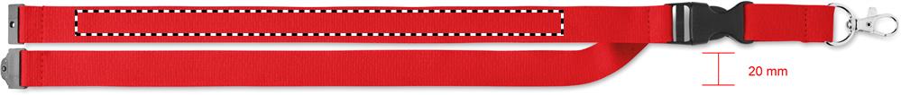 Lanyard aus Baumwolle mit Metallkarabiner, abnehmbarem Steckverschluss und Panikverschluss. 20 mm Breite.