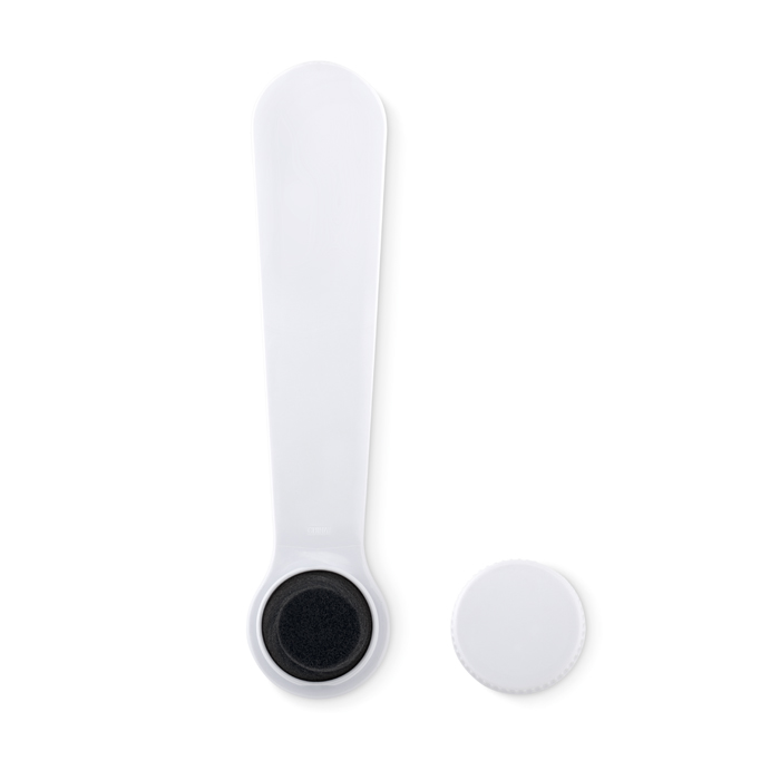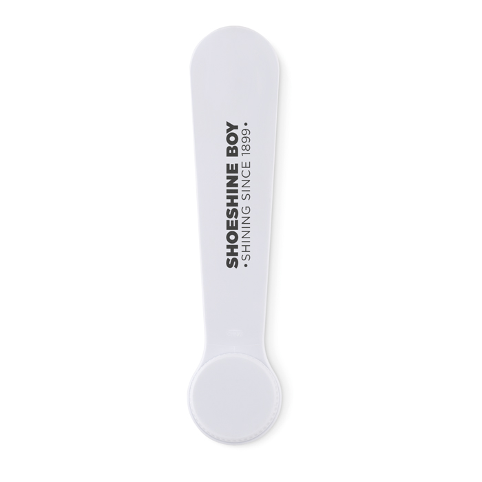 Schuhlöffel mit integriertem Schuhputzschwamm. Inkl. farblosem Pflegeöl. PP.