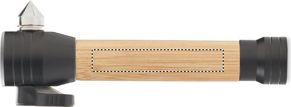3in1 Taschenlampe aus Bambus mit Magnetfuß. Notfall-Hammer und Gurtschneider. Lichtleistung: 60 Lumen. Exkl. 2 AAA-Batterien. Bambus ist ein natürliches Produkt, es kann daher zu leichten Abweichungen in Farbe, Dekor und Maßen kommen.