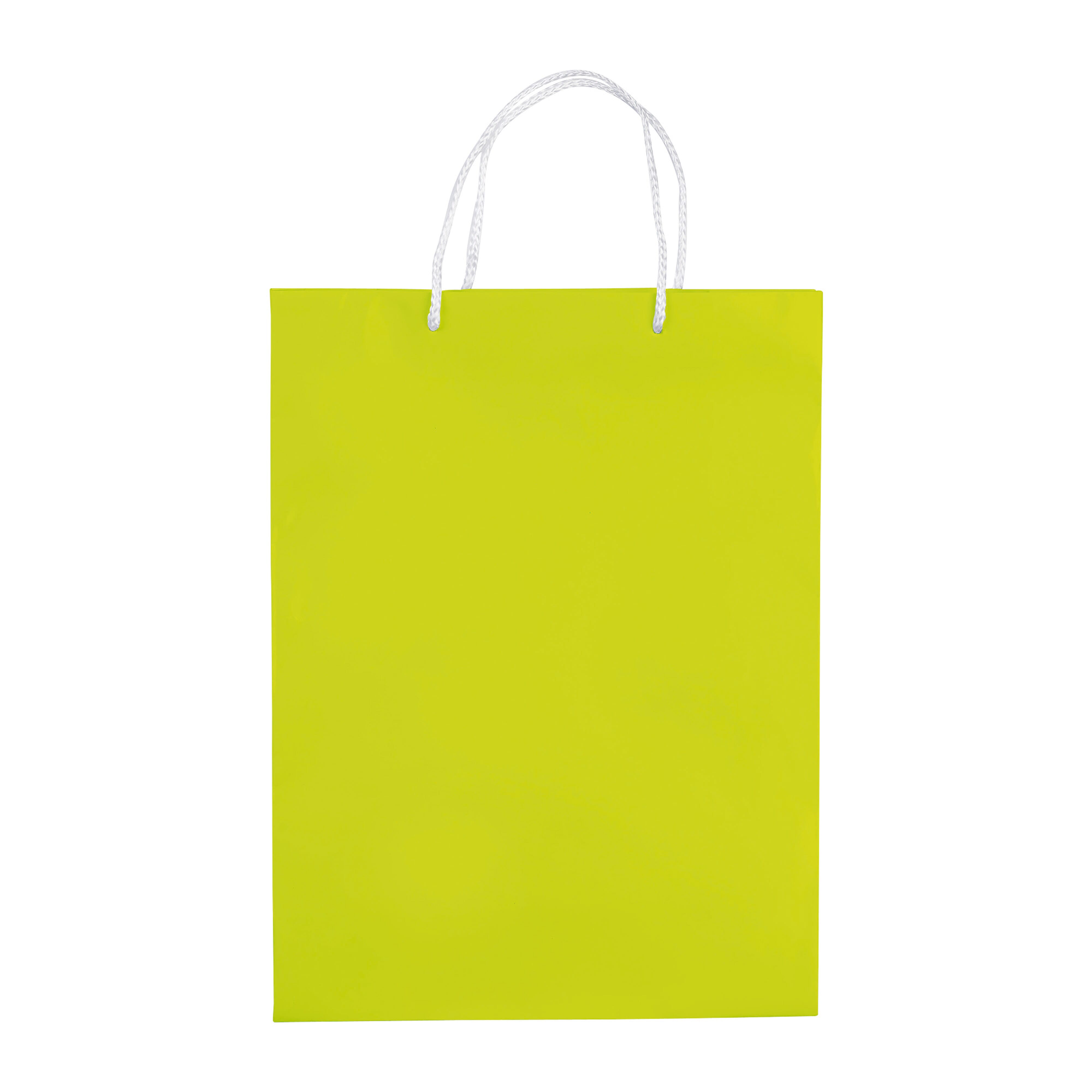 Große Papiertüte mit Seilgriffen. Erhältlich in mehreren Farben mit weißen/schwarzen Griffen. Große Druckfläche auf beiden Seiten. Starke Tasche. Glänzende Laminierung.