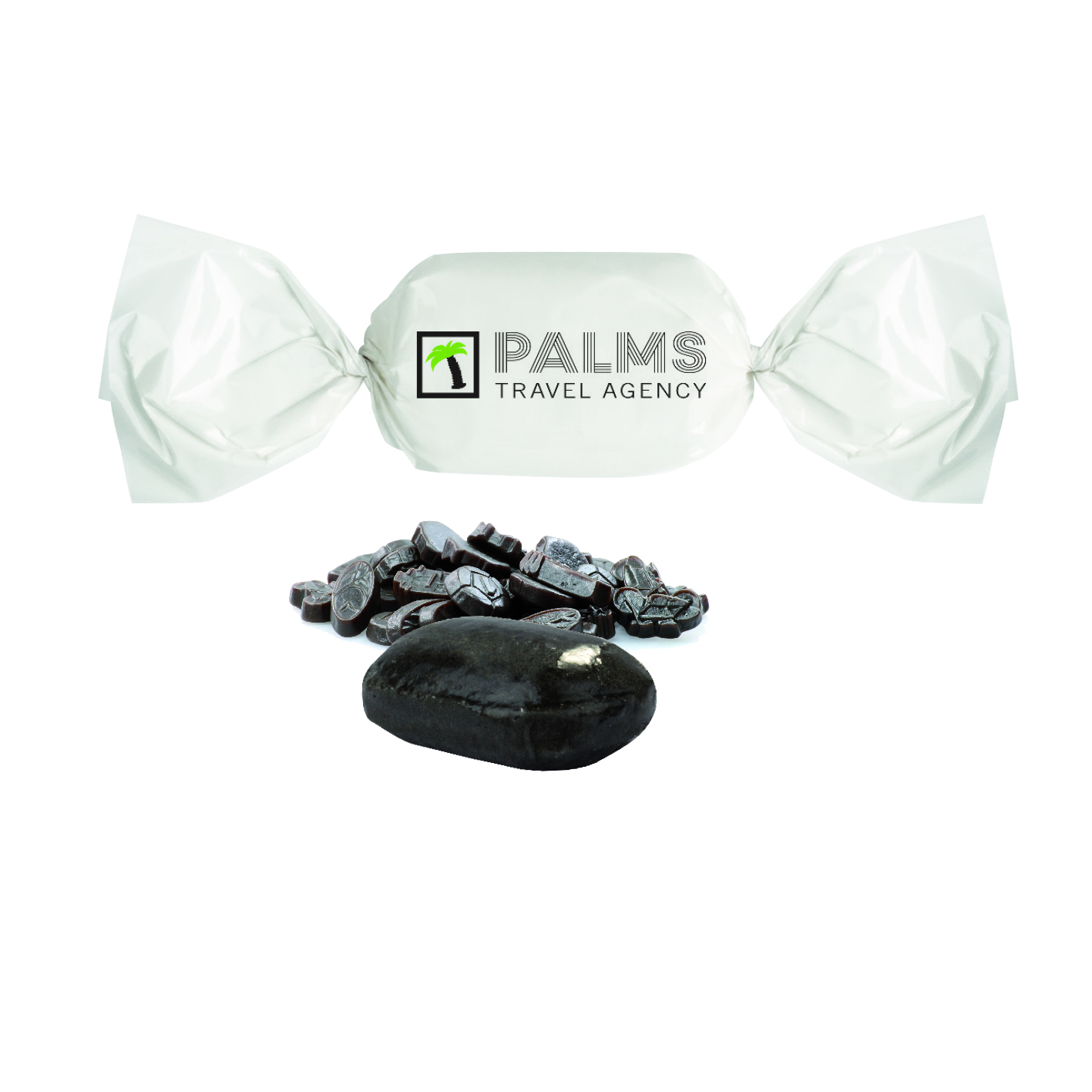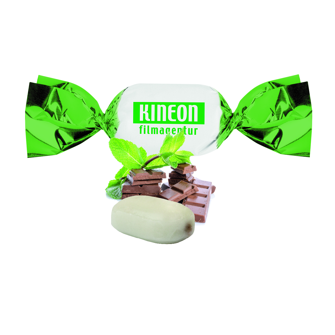 Produkt: Bonbon, im Wickler aus metallisierte Twistfolie mit weißem Mittelstreifen, individuell bedruckt, in 5 verschiedenen Farben lieferbar. Wechsel des Wicklers gegen Aufpreis. br>Ungefüllt (ca. 210 St. / kg, Ausnahme Vollmilch-Karamell ca. 200 St. / kg) Gefüllt (ca. 200 St. / kg) br>Sondergeschmacksrichtungen: Sind ab einer Mindestmenge von 300 kg auf Anfrage möglich br>Haltbarkeit: 24 Monate br>Preise: € / kg inkl. 4-c Flexodruck zzgl. Drucknebenkosten.