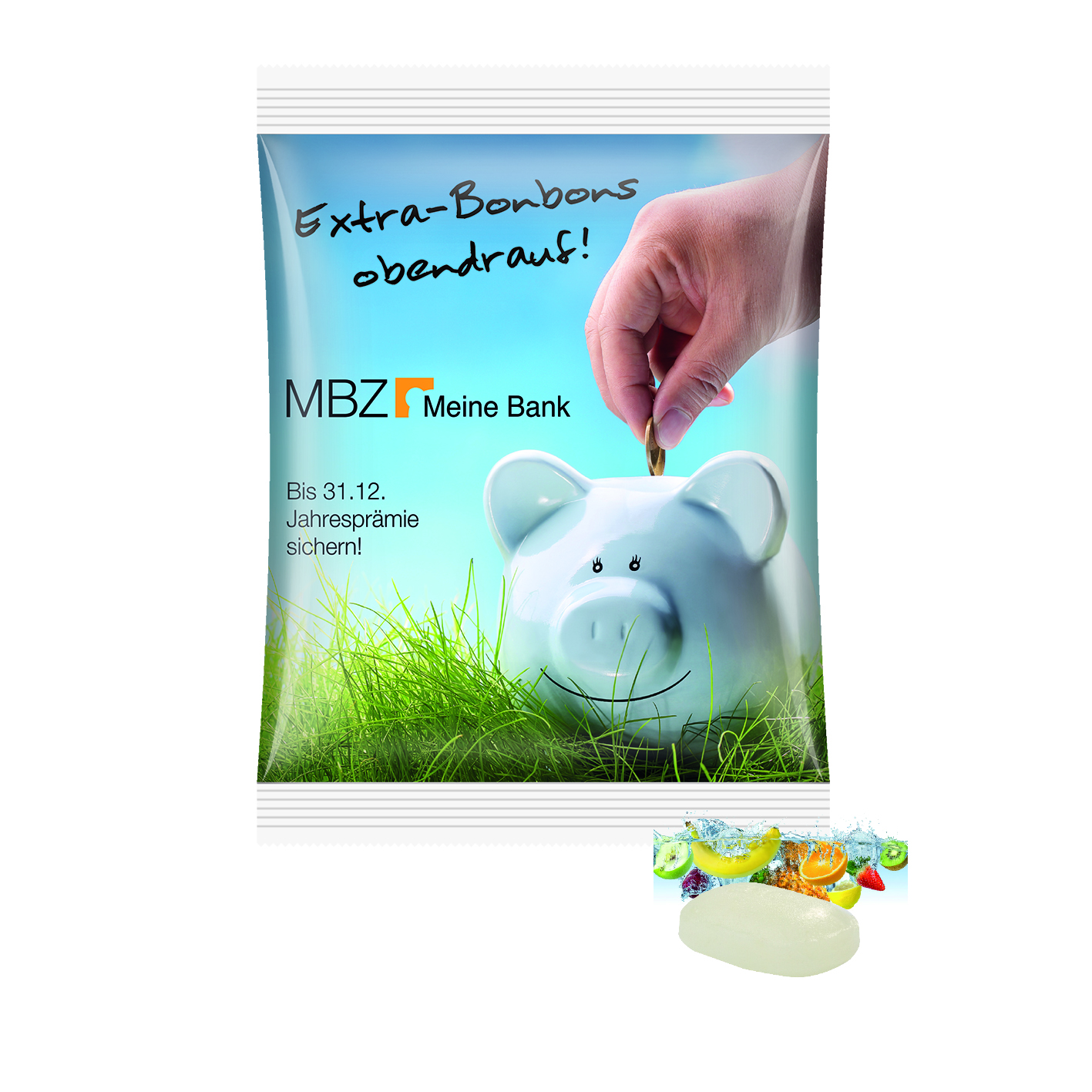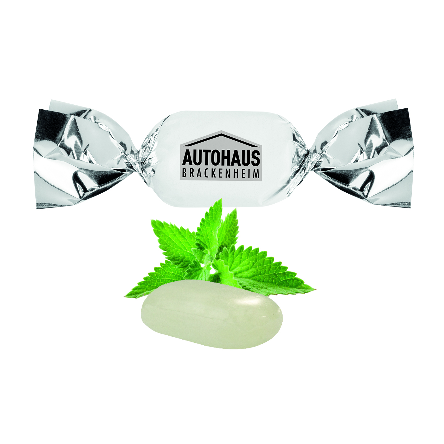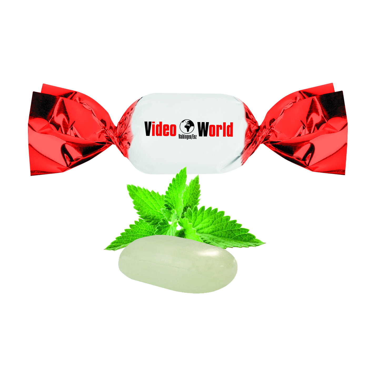 Produkt: Mentos Kaubonbon im transparenten Flowpack, individuell bedruckt br>Inhalt: 1 Mentos Kaubonbon in der Geschmacksrichtung Mint oder Fruit (Erdbeere, Orange, Zitrone gemischt) br>Haltbarkeit: 12 Monate br>Preise: € / kg inkl. 3-c Flexodruck zzgl. Drucknebenkosten.