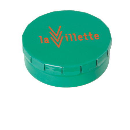 Klick Klack Dose Pfefferminz mit Metalldeckel - Diese Klick Klack Dose hat die Maße Ø 45 mm x 15 mm und ist befüllt mit ca. 12 g Pfefferminzpastillen.Der tolle Effekt bei dieser Dose ist der Klick Mechanismus des Springdeckels. Mittels Druck "klackt" der Deckel auf und man kann den Deckel entnehmen. Deshalb wird die Dose auch Drück mich Dose genannt. Zum verschließen wird der Deckel auf die Dose gelegt und einfach Druck auf die Seite des Deckels ausgeübt und der Deckel klackt wieder zu. Erhältlich ist diese Pfefferminzdose in einer großen Farbenvielfalt mit zwei verschiedenen Füllungen. Ihre Werbung drucken wir von 1 bis 4 farbig auf dem Deckel in einer maximalen Größe von 40mm Durchmesser. Diese Pfefferminzdose ist befüllt mit Pfefferminzdragees mit feinstem erfrischendem Minzgeschmack. Sie können nach Belieben den Geschmack der Minzdragees selbst wählen und konfigurieren. Wählen Sie zwischen den Sorten süßer Pfefferminzgeschmack (gesüßt mit Dextrose) oder erfrischender Minzgeschmack zuckerfrei. Unsere Pfefferminzdosen mit Ihrem Logo haben auf der Unterseite der Mintboxen einen Zutatenaufkleber. Auf diesem sind sämtliche vorgeschriebene Inhaltsangaben enthalten. Alle Pfefferminzbonbons haben eine Mindesthalbarkeit von 12-18 Monaten bei sachgerechter Lagerung. Die frischen Minzpastillen sind am Rand mit einer Folie verschweißt. So erhält der Kunde einen sicheren Erstzugriff.