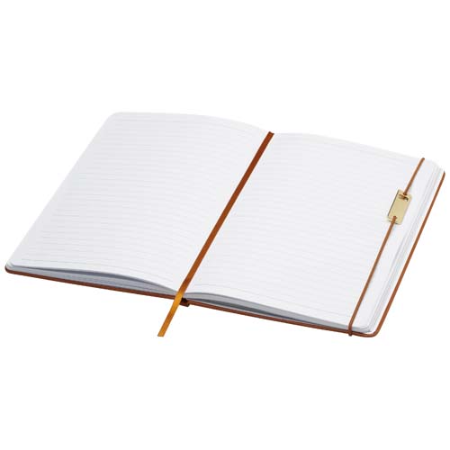 Der Legato ist eine elegante Kombination aus einem Notizbuch im Format A5 und einem Tintenroller. Der Tintenroller hat einen oberen Schaft aus recyceltem Messing mit goldfarbener Verchromung, einen unteren Schaft mit schwarz/brauner Pulverbeschichtung, goldfarbene Metallaccessoires und ein LUXE-Logo auf dem mittleren Ring. Tintenfarbe: Schwarz. Schreiblänge: 400 Meter. Strichstärke: 0,7 mm. Das Notizbuch hat 80 Blatt liniertes Papier (80 g/m²), einen Einband aus recyceltem Kunststoff, einen elastischen Verschluss, ein Lesebändchen und eine Ziehharmonikatasche. Der elastische Verschluss ist mit einem goldfarbenen Metallaccessoire versehen. Verpackt in einer Geschenkbox aus recyceltem Karton.