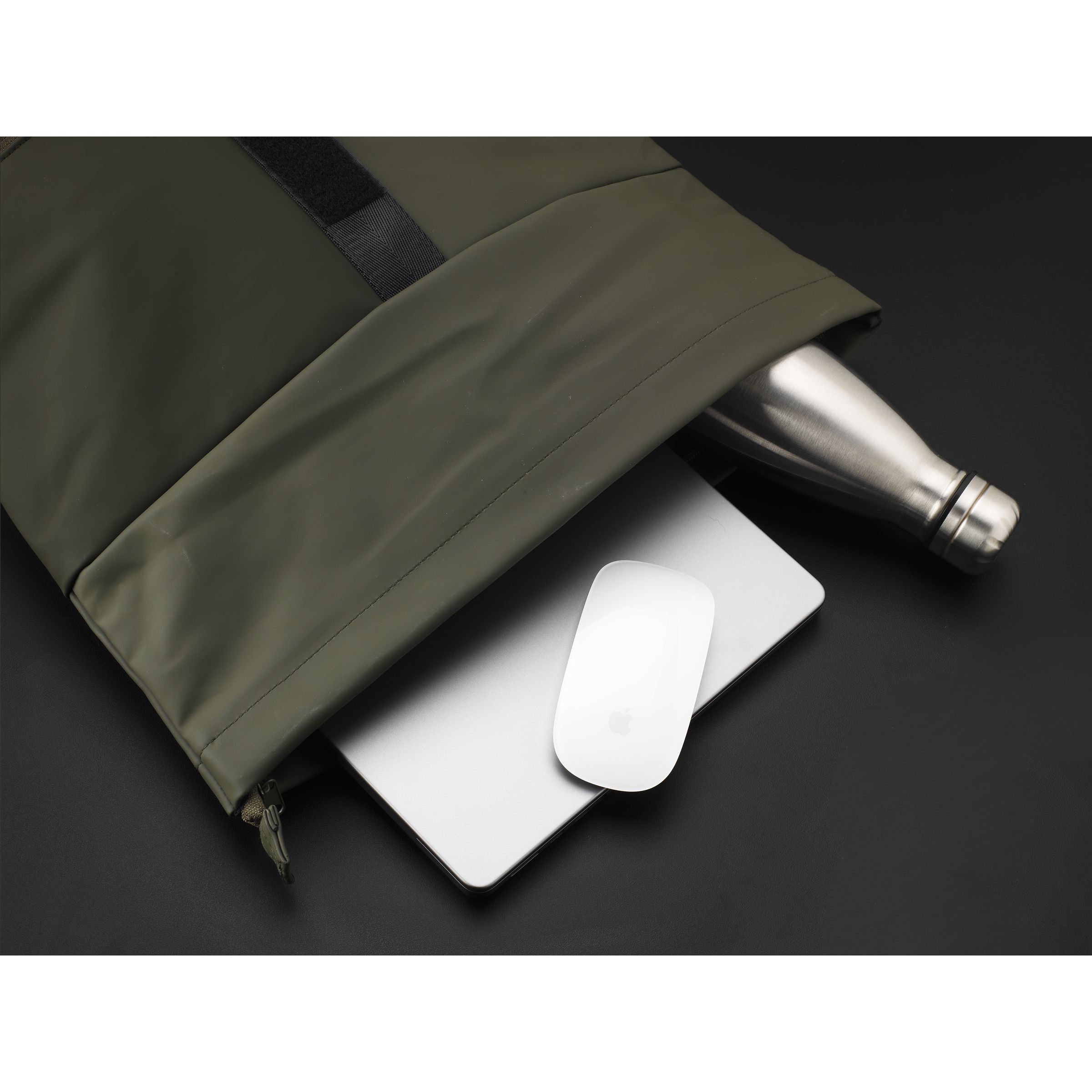 WoW! Praktischer, robuster und großzügiger 'Rolltop'-Laptop-Rucksack mit extra Reißverschlussfach auf der Vorderseite. Dieser Rucksack hat an der Oberseite nicht nur einen praktischen Rollverschluss mit Klettband, sondern auch einen Reißverschluss. Das Außenmaterial dieses Rucksacks besteht aus wasserabweisendem PU. Die Innenseite dieses Materials besteht aus recyceltem PU. Der Rucksack hat ein sauber verarbeitetes Futter aus recyceltem PET und ist mit allem Komfort ausgestattet. Für den sicheren Transport eines Laptops (bis zu 15,6 Zoll) oder Tablets verfügt das großzügige Innenfach über ein separates Laptop-Fach. Darüber hinaus finden Sie auf der Innenseite verschiedene Einschubfächer zur organisierten Aufbewahrung von Handy, Schreibutensilien oder anderem Zubehör. Dank des Gummibandes an der Innenseite bleibt eine Trinkflasche aufrecht an ihrem Platz. Mit praktischer Trageschlaufe. Für zusätzlichen Tragekomfort sind die Rückseite und die verstellbaren Schulterriemen mit weichem Schaumstoff ausgestattet. Dieser Rucksack ist perfekt für den täglichen Gebrauch und lässt sich leicht in die Schule oder zur Arbeit mitnehmen. Fassungsvermögen: ca. 19 Liter.