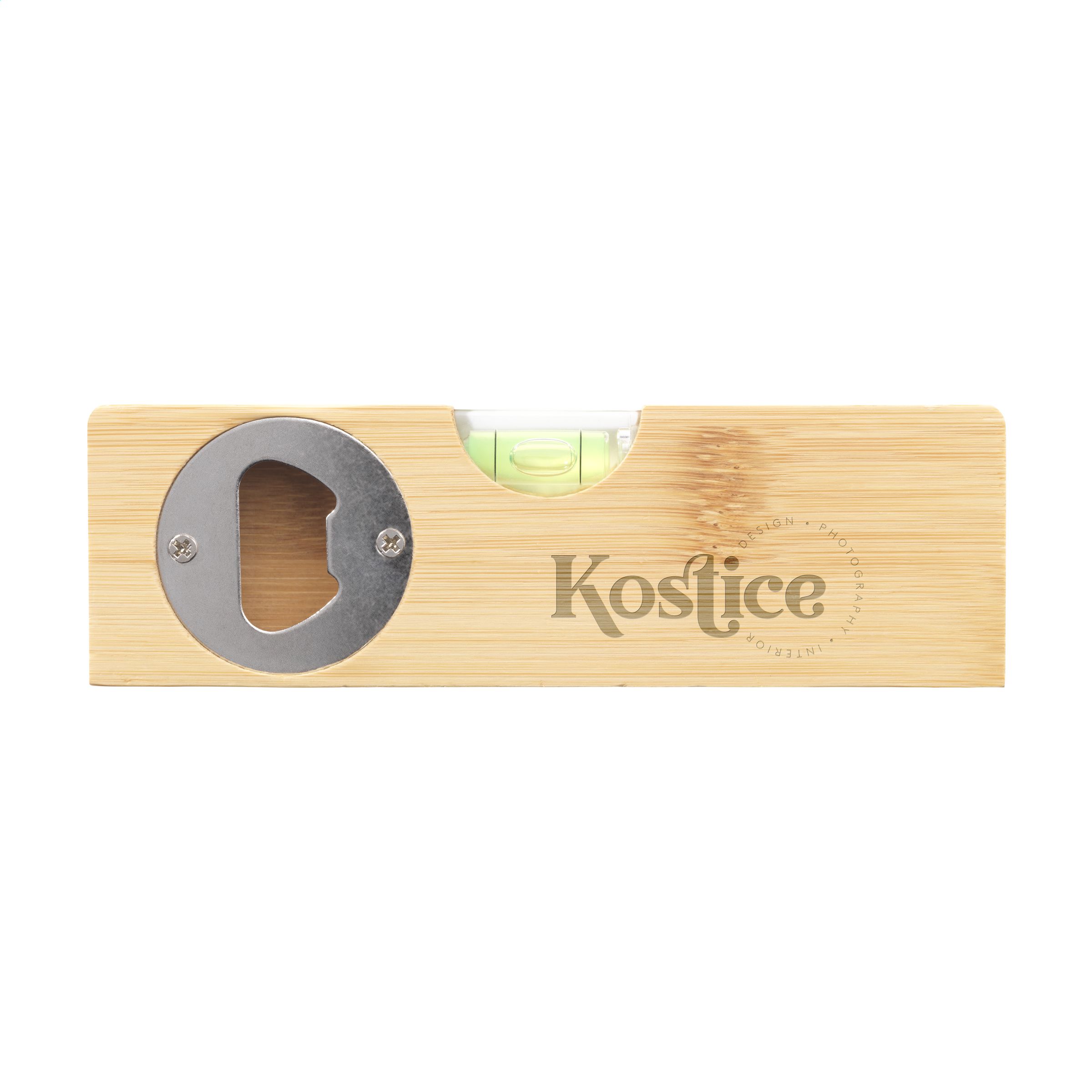 Flaschenöffner aus Bambus mit eingebaute Wasserwaage. Ein praktisches, multifunktionales Werkzeug, das während oder nach der Arbeit verwendet werden kann. Bambus ist ein Naturprodukt. Deshalb können die Farben und Abmessungen von Produkt zu Produkt variieren. Pro Stück in einer Verpackung.