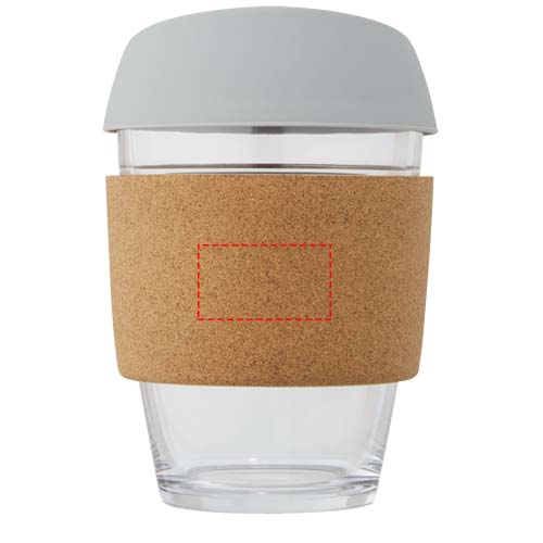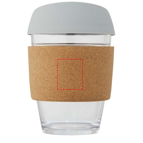 Einwandiger Becher aus Borosilikatglas mit glattem Korkgriff. Verfügt über einen abnehmbaren lebensmittelechten Silikondeckel. Der Becher besteht aus 100 % haltbarem Borosilikatglas, das die Frische des Getränks bewahrt, und keine schädlichen Chemikalien enthält. Geprüft und zugelassen nach deutschem Lebensmittelsicherheitsgesetz (LFGB) und auf Phthalatgehalt gemäß REACH Verordnung getestet. Passt unter die meisten Kaffeemaschinen und ist damit der perfekte Becher für die Arbeit oder unterwegs. Das Fassungsvermögen beträgt 360 ml. Durch Entfernen des Korkgriffs ist der Becher spülmaschinenfest. Verpackt in einer Geschenkbox aus Recyclingkarton.