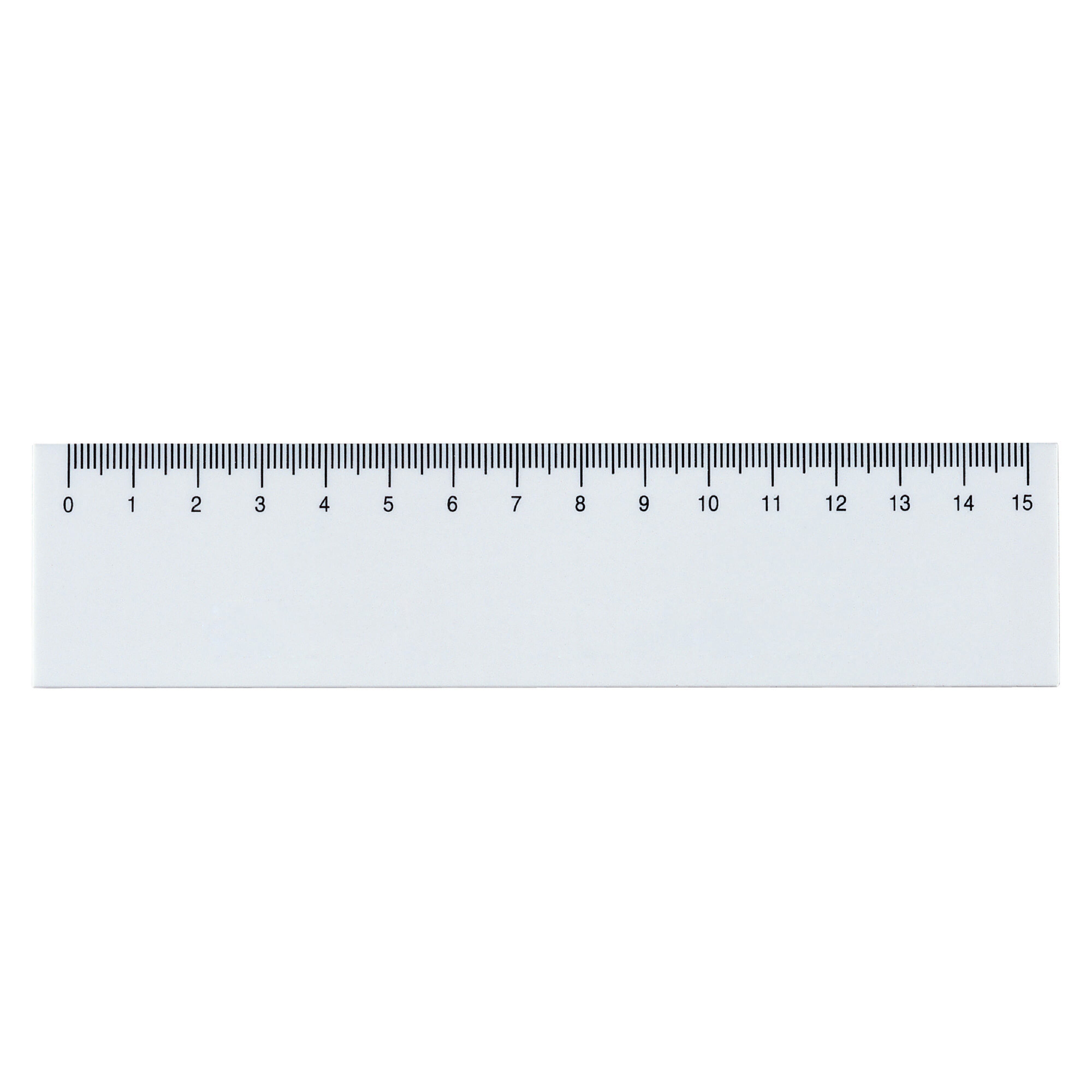 Lineal aus Kunststoff, 15 cm mit großer Druckfläche.