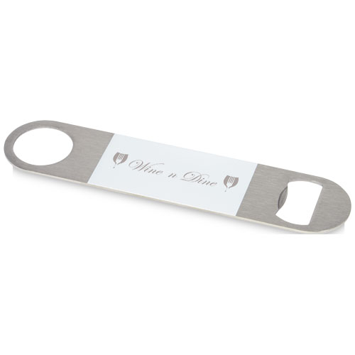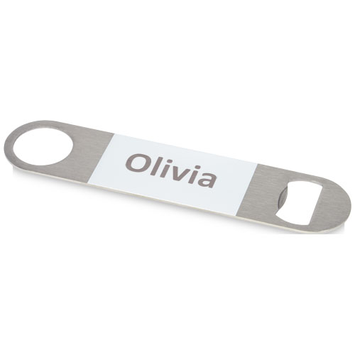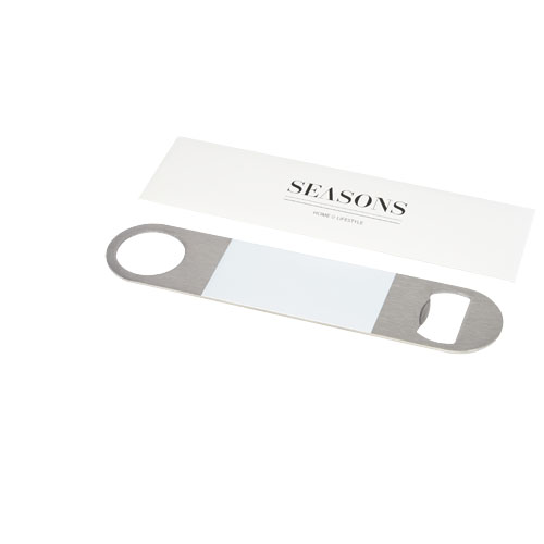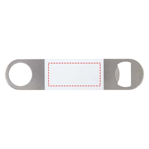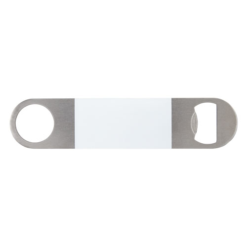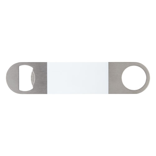 Flaschenöffner aus Edelstahl mit einer großen farbigen Fläche in der Mitte.