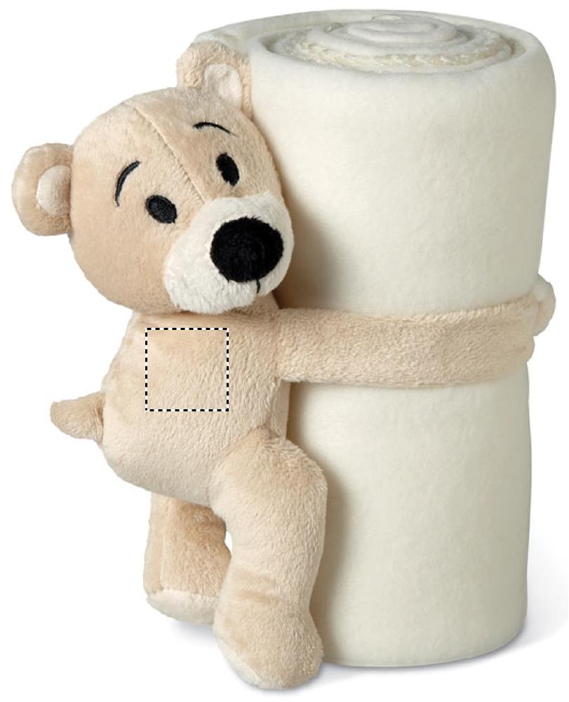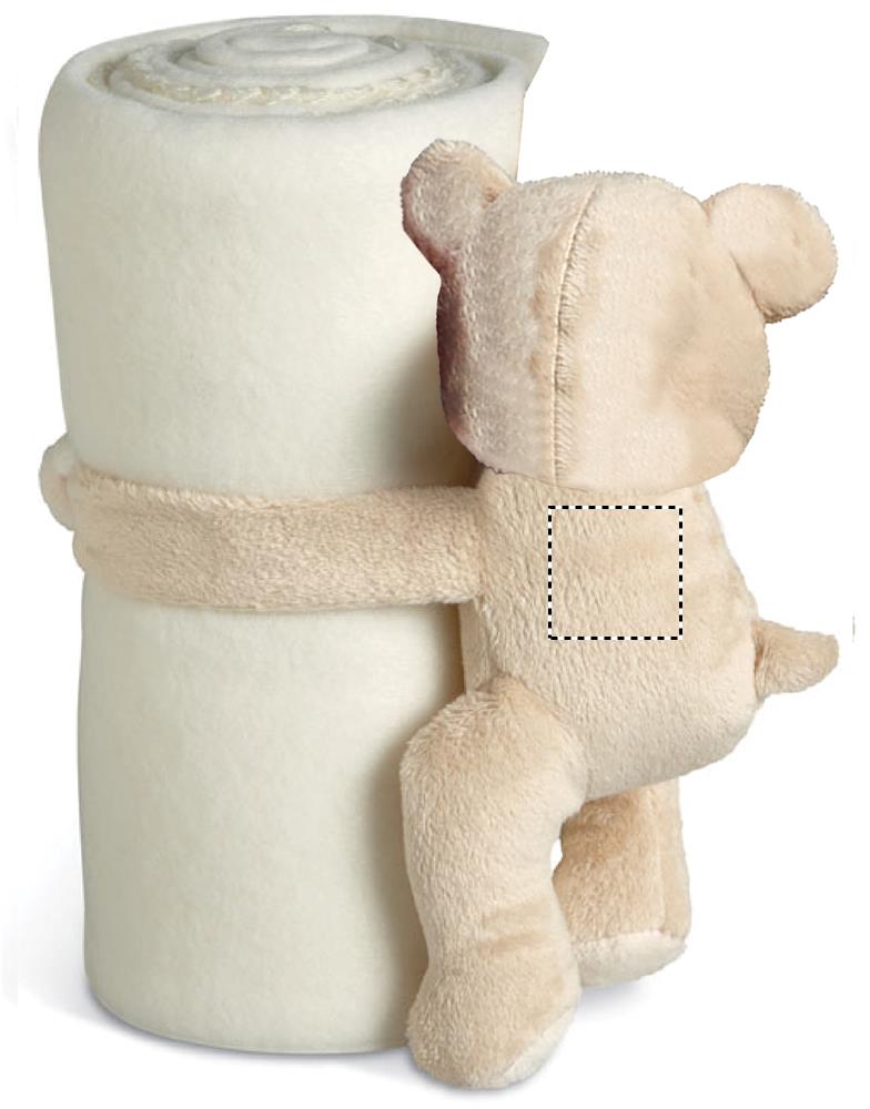 Kinder-Fleece-Decke Plüschbär. Der Bär hält die Decke fest im Arm (per Klettverschluss).