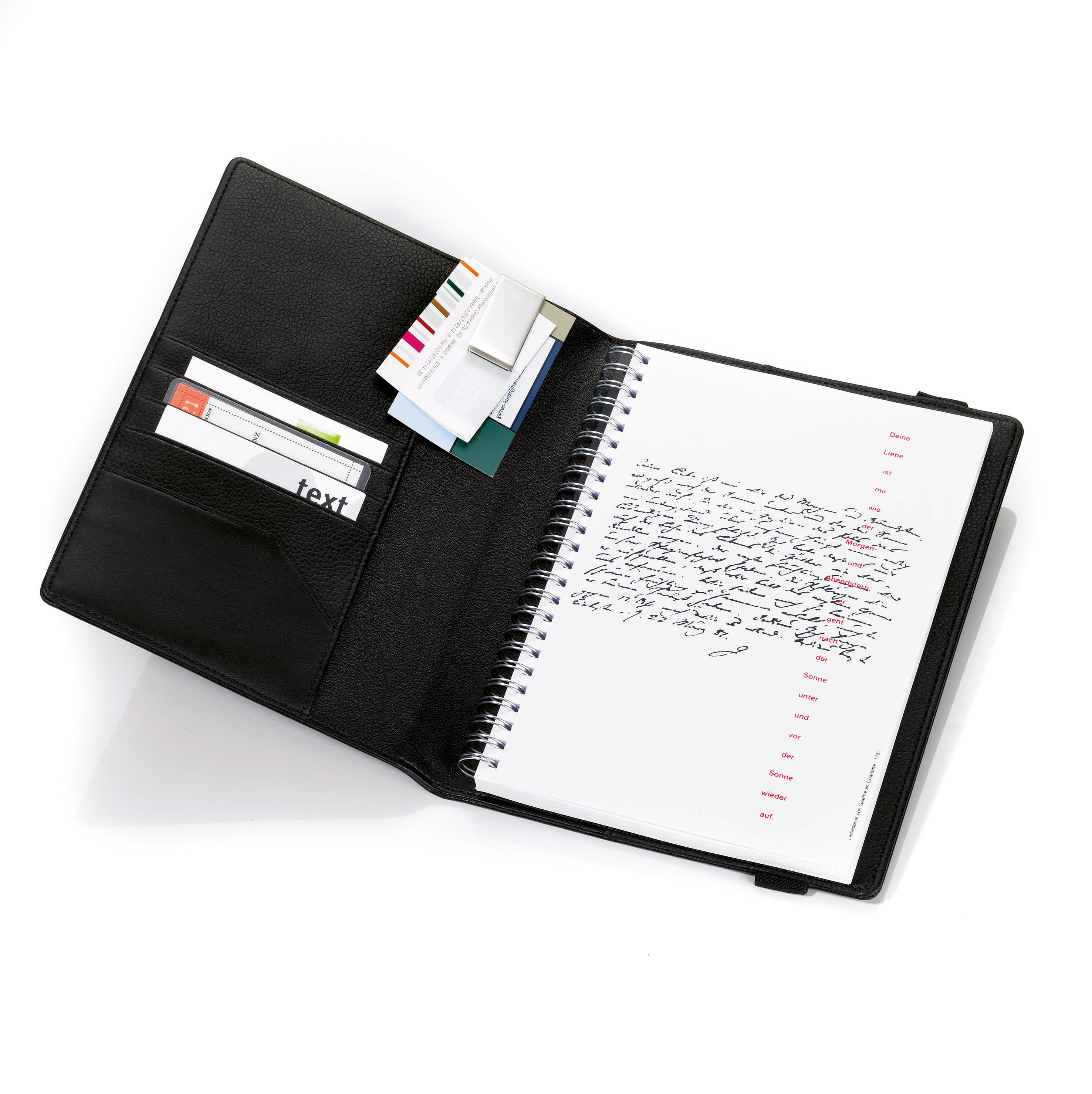 Reisemappe inkl. Notizblock DIN A5, Metallclip für Belege, 5 Kartenfächer, Elastikbandverschluss, Kunstleder/Leder, schwarz Einen hochwertigen Organizer braucht heute jeder. Vom Manager über Handwerker bis zum Organisator einer privaten Feier IMMER ZUR HAND!· IM MEETING · UNTERWEGS · FÜR ÜÜBERSICHT UND ORDNUNG· SCHNELLE NOTIZEN
