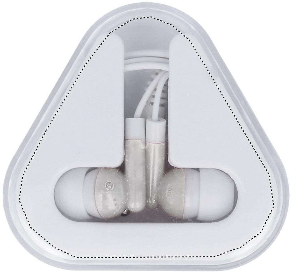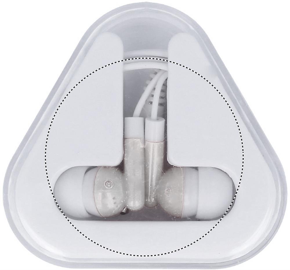 Ohrhörer in einem dreieckigen Kunststoff-Etui. Kabellänge 120 cm.