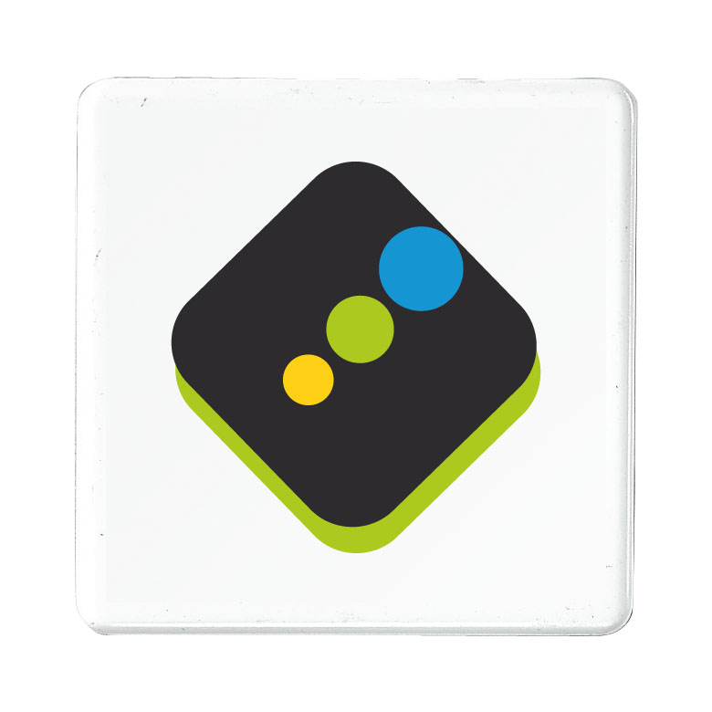 Quadratischer Magnet. Mit Magneten haftet die Werbebotschaft für lange Zeit am Kühlschrank, Schreibtisch oder Magnetboard. Sonderformen auf Anfrage.