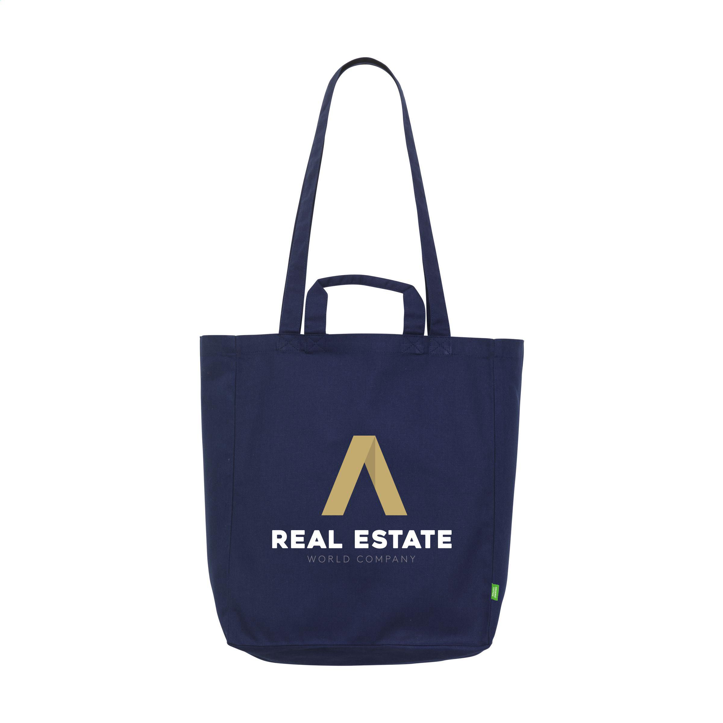 Robuste Einkaufstasche aus 100% gewebtem Bio-Baumwoll-Segeltuch (280 g/m²). Mit kurzen und langen Griffen kann die Tasche auf verschiedene Arten getragen werden. Ausgestattet mit einem kleinen Staufach auf der Innenseite. Ideal für häufige Wiederverwendung. Fassungsvermögen ca. 19 Liter.