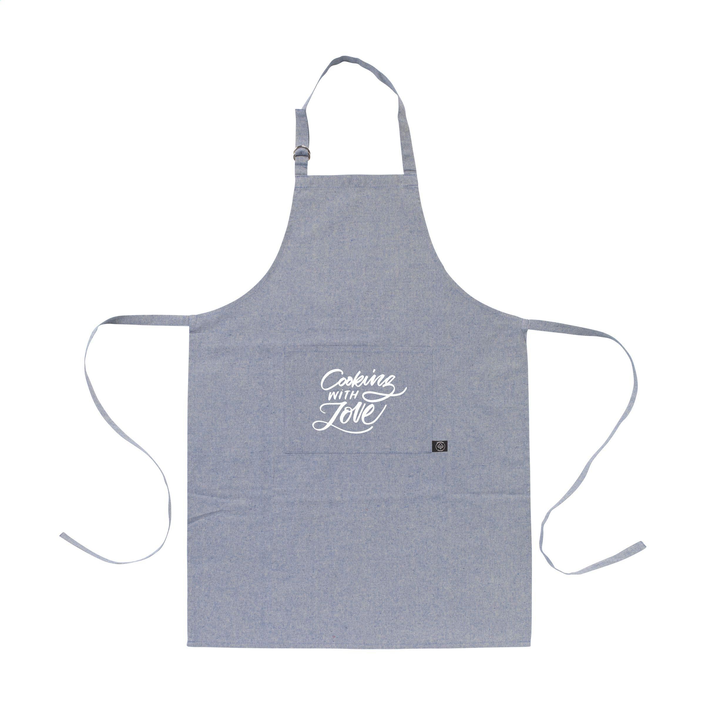 Schürze aus 80% recycelter, gemischter, Baumwolle und 20% recyceltem Polyester (160 g/m²). Mit aufgesetzter Tasche. Das Umhängeband kann mit einer Metallschnalle eingestellt werden. GRS-zertifiziert. Wenn Sie dieses Produkt wählen, entscheiden Sie sich für recycelte Baumwolle. Daher kann die Farbe je nach Produkt variieren.