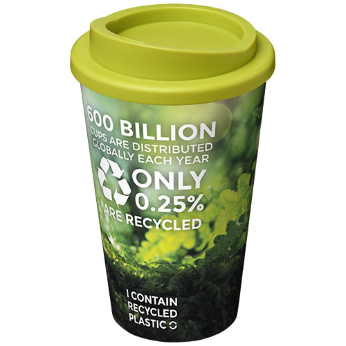 Doppelwandiger Isolierbecher mit aufschraubbarem, auslaufsicherem Deckel und integriertem Griff. Die äußere Schicht des Bechers ist aus recyceltem Kunststoff hergestellt. Der Becher verfügt über ein vollfarbiges, umlaufendes Design, das an das Produkt angepasst ist – für Strapazierfähigkeit und Haltbarkeit. EN12875-1 konform; spülmaschinen- und mikrowellenfest. Das Fassungsvermögen beträgt 350 ml. Mischen und kombinieren Sie Farben, um Ihren perfekten Becher zu kreieren. Kontaktieren Sie den Kundendienst für weitere Farboptionen. Hergestellt in Großbritannien. Präsentiert in einer weißen Geschenkschachtel. Mindestabnahmemenge 50 Stück. BPA-frei.