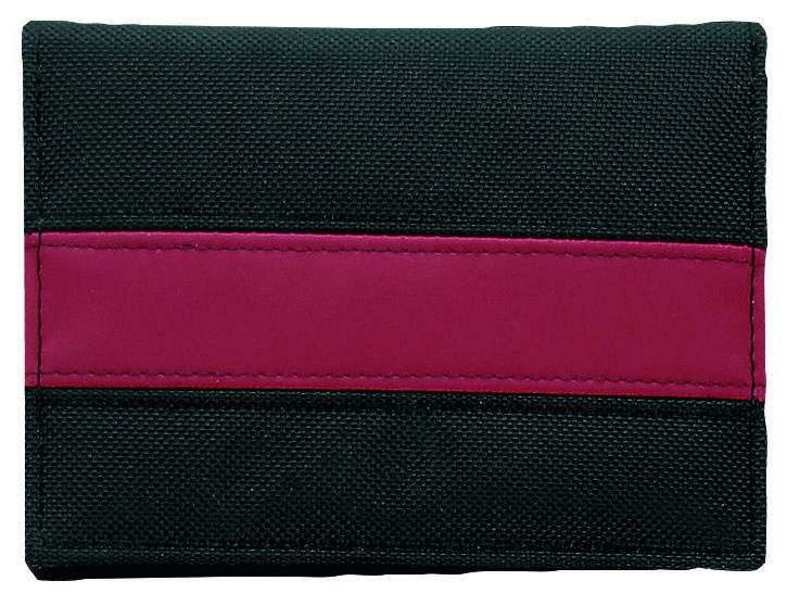 Strapazierfähige Ausweistasche aus Nylon mit CI-gerechtem Farbstreifen. Gebugt, VPE 200. 1 Netzfach, 2 Ausweis- und 3 Kartenfächer