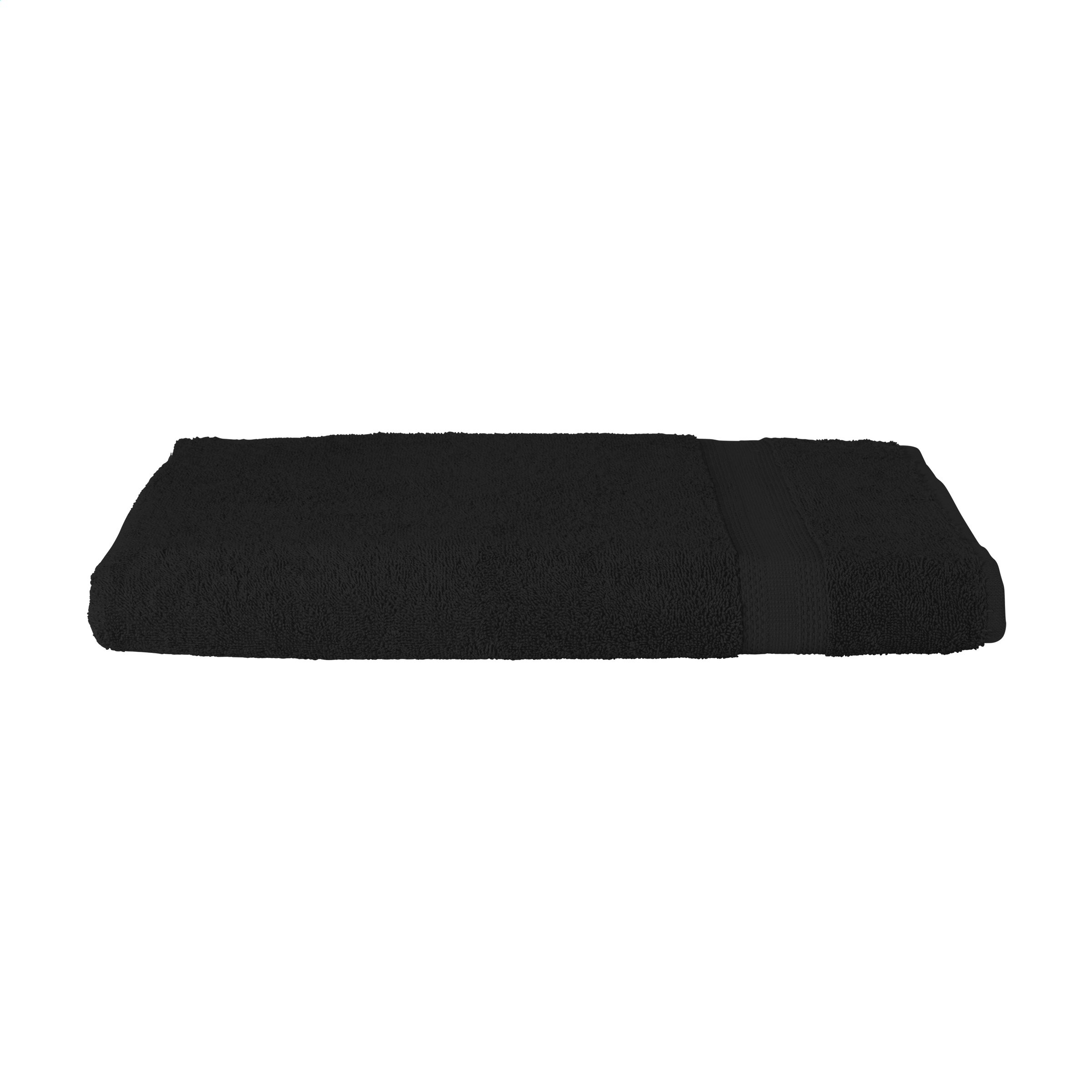 Badetuch der Marke Solaine. Aus 100 % Baumwolle (360 g/m²), weich und bequem. Mit wunderschön gewebtem Band mit attraktivem Motiv. Info: Die Möglichkeiten des Stickens kleiner Details (wie auch kleiner Buchstaben) ist wesentlich begrenzter als beim Drucken. Bei nicht-stickbaren Details in Ihrem Logo, erhalten Sie von uns natürlich eine Nachricht.