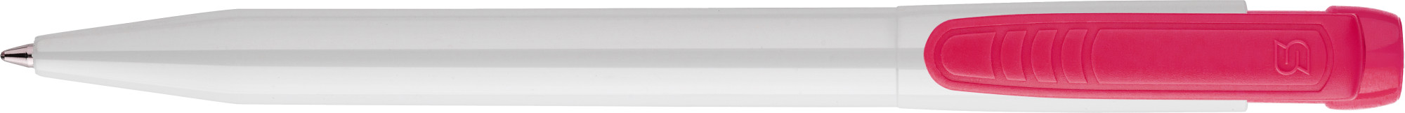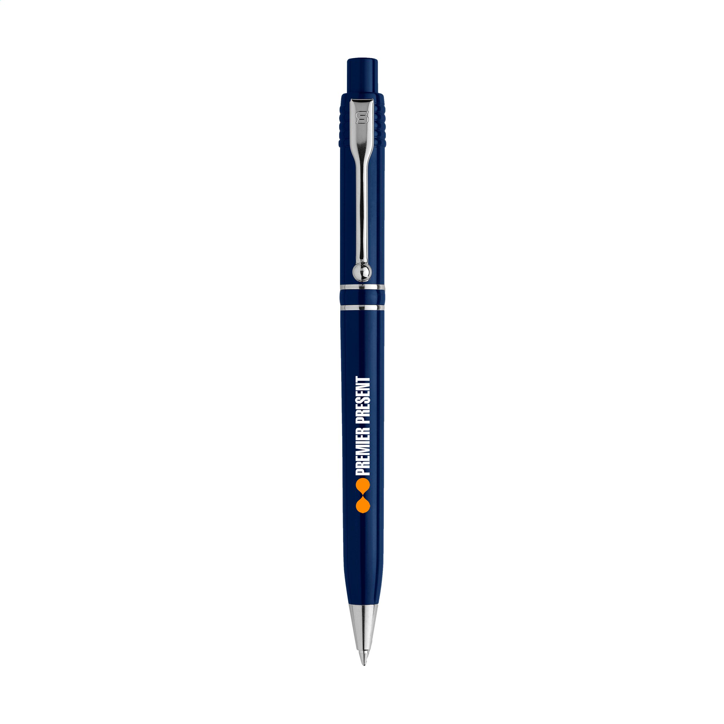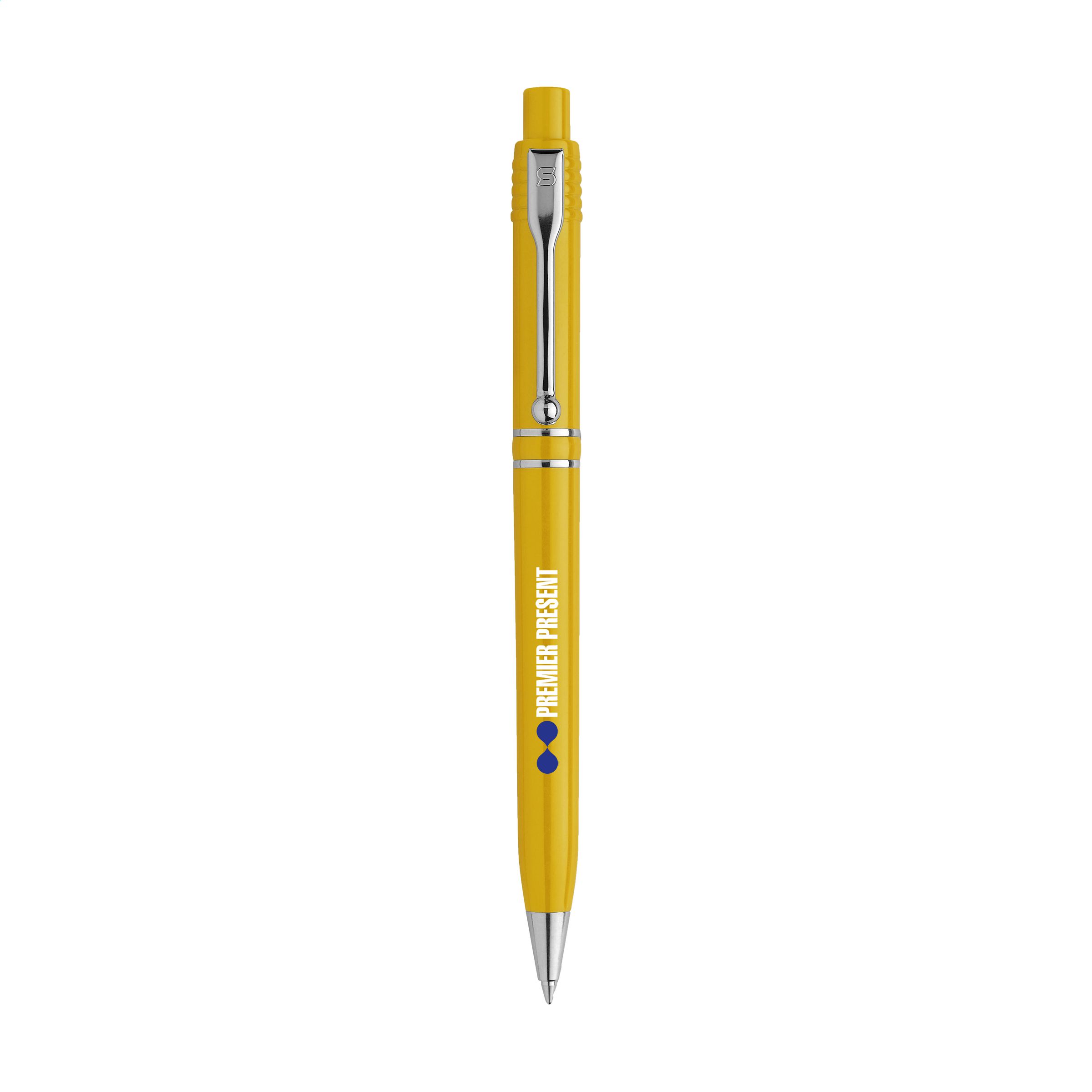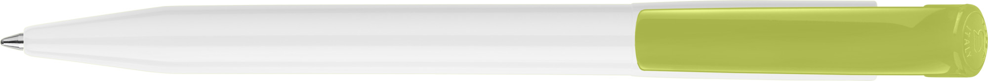 <p>Moderner Hardcolour-Kugelschreiber mit gebogenem Clip. Ein beliebter Werbeartikel wegen seiner großen Druckfläche. Druckkugelschreiber ausgestattet mit einer blau schreibenden X20-Refill-Mine. Druckkugelschreiber aus ABS, hergestellt in Europa. Ab einer Abnahmemenge von 5.000 Stück sind eigene Farbkombinationen möglich.</p><ul><li>Mechanismus: Druckmechanismus</li><li>Standardschreibfarben: blau</li><li>Minenart: X-20</li></ul>