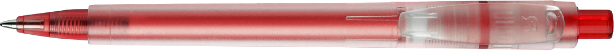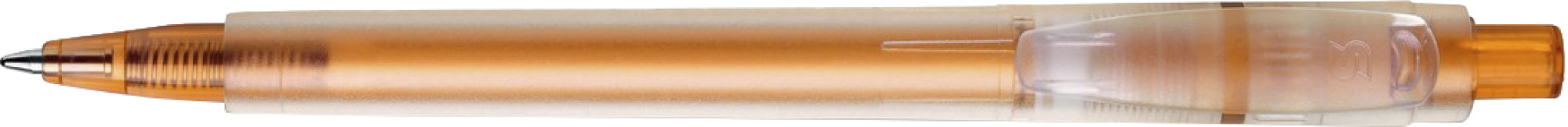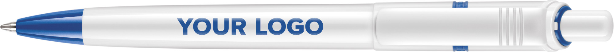 <p>Moderner transparenter Kugelschreiber mit gebogenem Clip. Ein beliebter Werbeartikel wegen seiner großen Druckfläche. Druckkugelschreiber ausgestattet mit einer blau schreibenden X20-Refill-Mine. Druckkugelschreiber aus ABS, hergestellt in Europa. Ab einer Abnahmemenge von 5.000 Stück sind eigene Farbkombinationen möglich.</p><ul><li>Mechanismus: Druckmechanismus</li><li>Standardschreibfarben: blau</li><li>Minenart: X-20</li></ul>