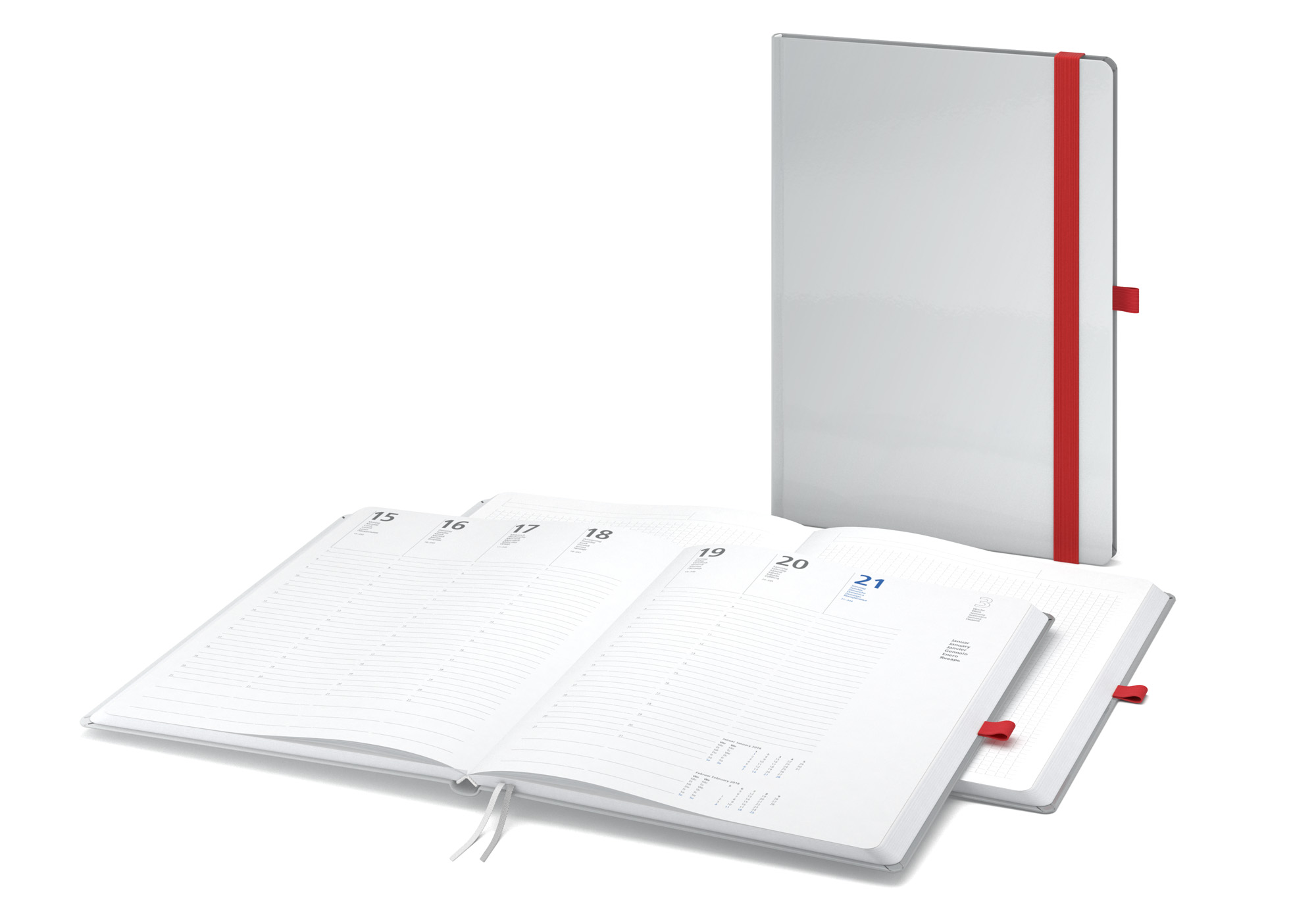 Format: Blattformat; 210 x 297 mm; Kalendarium: Match-Hybrid Month:; Deutsch 3sprachig D/GB/F; je Monat 2 Seiten; 25 Monate: Juni 2017 - Juni 2019; Match-Hybrid Week:; Deutsch 6sprachig D/GB/F/I/E/RUS; je Woche 2 Seiten; Umfang: 192 Seiten plus Einstecktasche; Match-Hybrid Month:; 128 Seiten Notizen; 64 Seiten Kalendarium; Match-Hybrid Week:; 128 Seiten Kalendarium; 64 Seiten Notizen; Verarbeitung: Hardcover mit unwattierter Buchdecke; Buchblock und Decke mit runden Ecken; Eckenperforation (nur für Kalendarium Week); 2 Lesezeichen; Kapitalband; runder Rücken; Ausstattung: Notizseiten mit Winkelkaro; Mikroperforation; Einstecktasche; Gummiband-Verschluss 15 mm und Gummi-Stiftschlaufe gelb, grün, mittelblau, orange, rot, schwarz oder silbergrau; Einband: Cover-Star gloss-individuell (auf Wunsch matt-individuell, ohne Mehrpreis); Material: Hochweißes Schreibpapier 90 g/m²; Druck: 4C-Quality Digital inklusive; Verpackung: Wellpapp-Versandtasche weiß:; Nr. 43 — 350 x 250 mm; Werbefläche: Kompletter Einband;