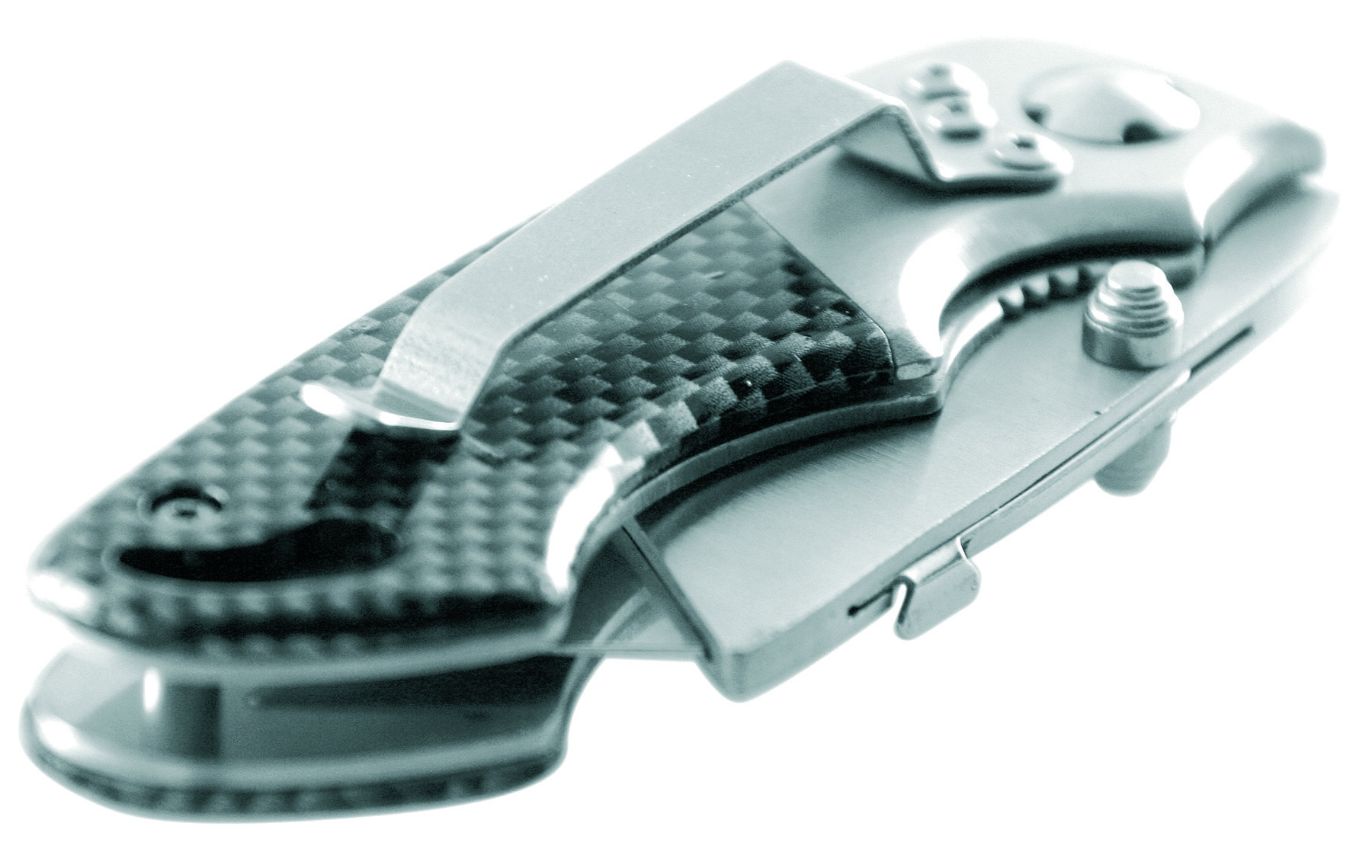 Cuttermesser mit Griff in Carbon-Optik und wechselbarer, genormter Cutterklinge. VPE 100. Sicherheitsbügel, Gürteletui, Designkarton