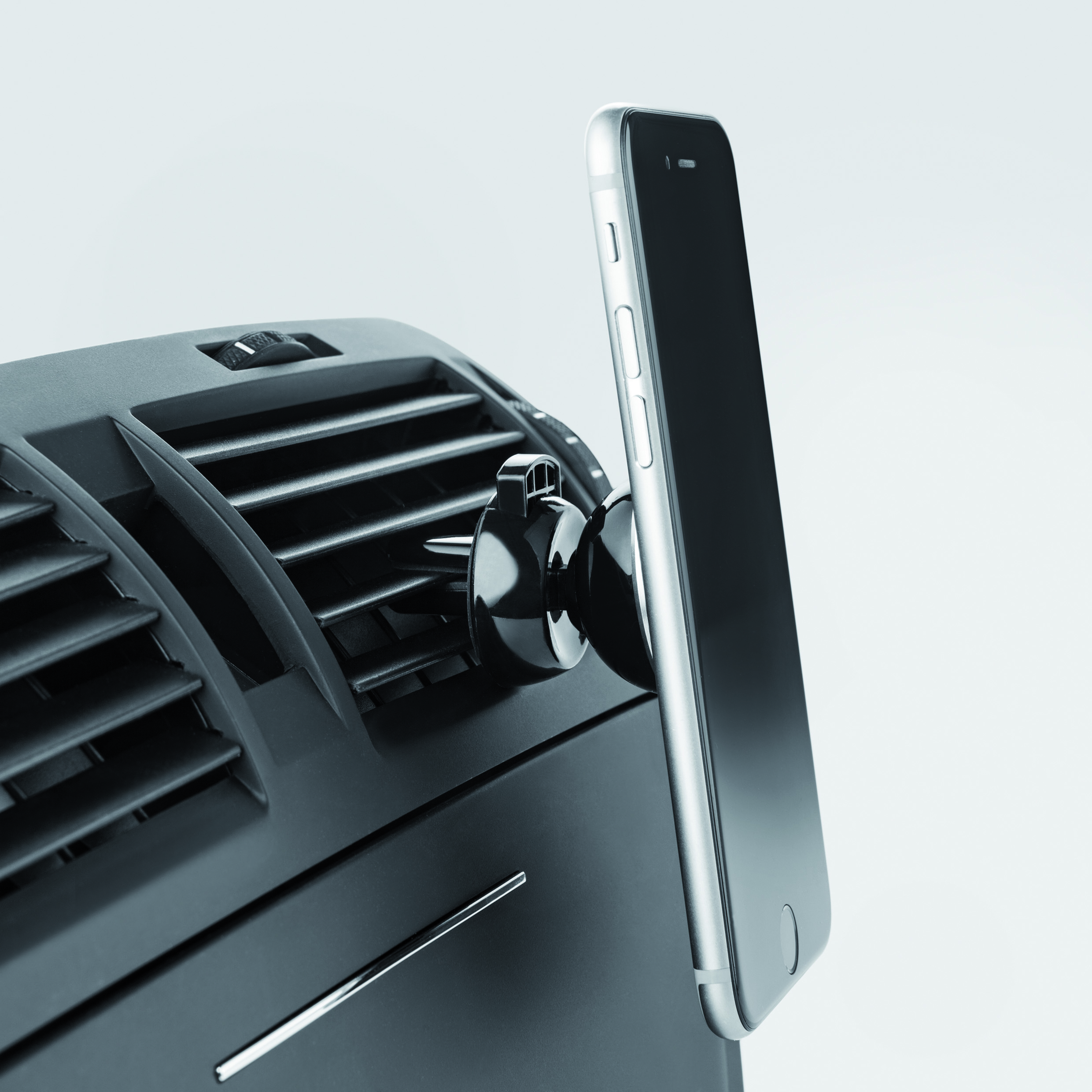 Magnetischer Smartphone-Halter zur Befestigung an den Lüftungsauslässen im direkten Sichtbereich. VPE 100. Magnet, Designkarton