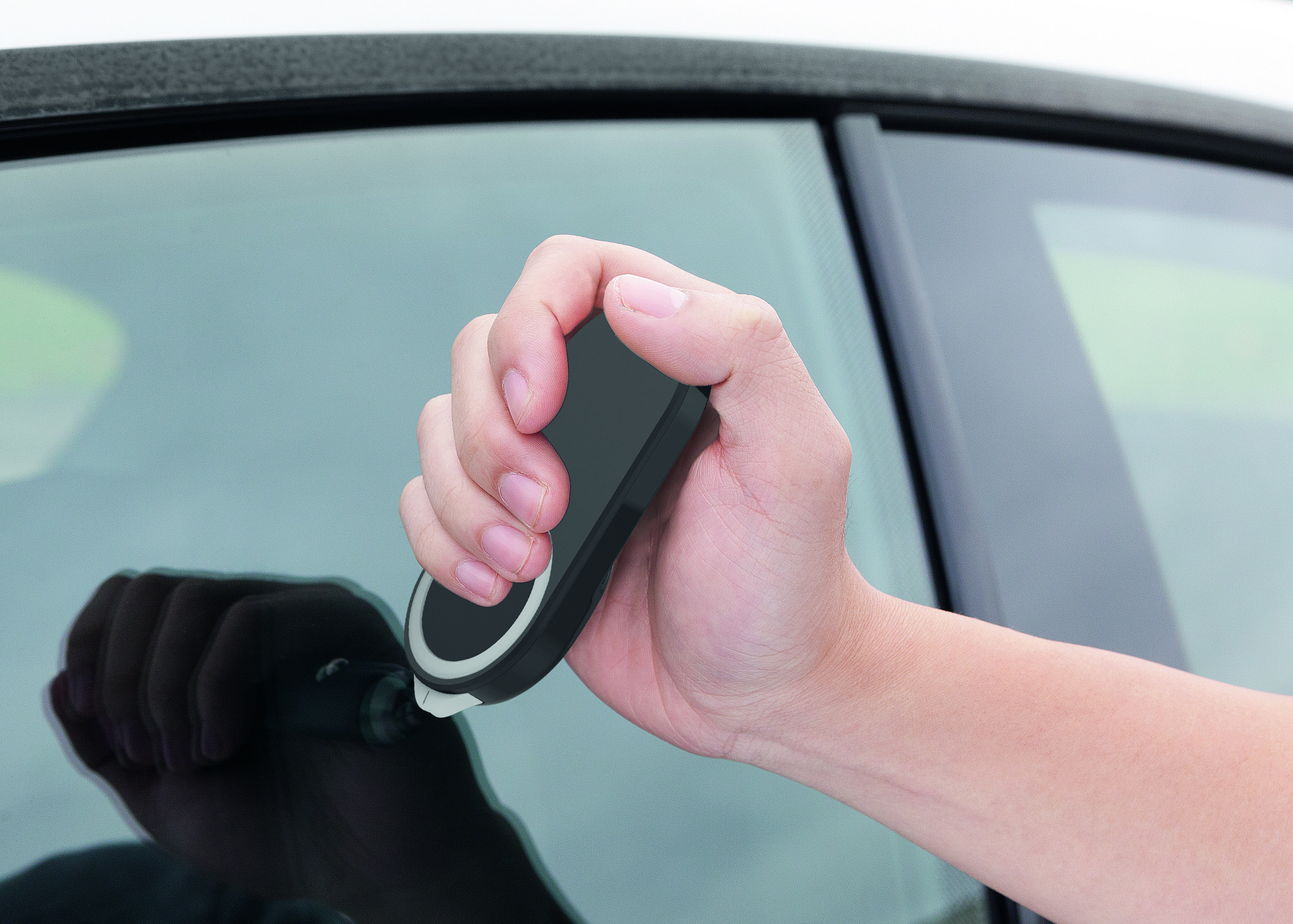 Zuverlässiger Handyhalter, unsichtbar magnetisch, für die Lüftungsschlitze. Federclipbefestigung, einfache Montage, VPE 100. Gurtschneider und Nothammer, 2 Metallplättchen + 3M Sticker, Designkarton