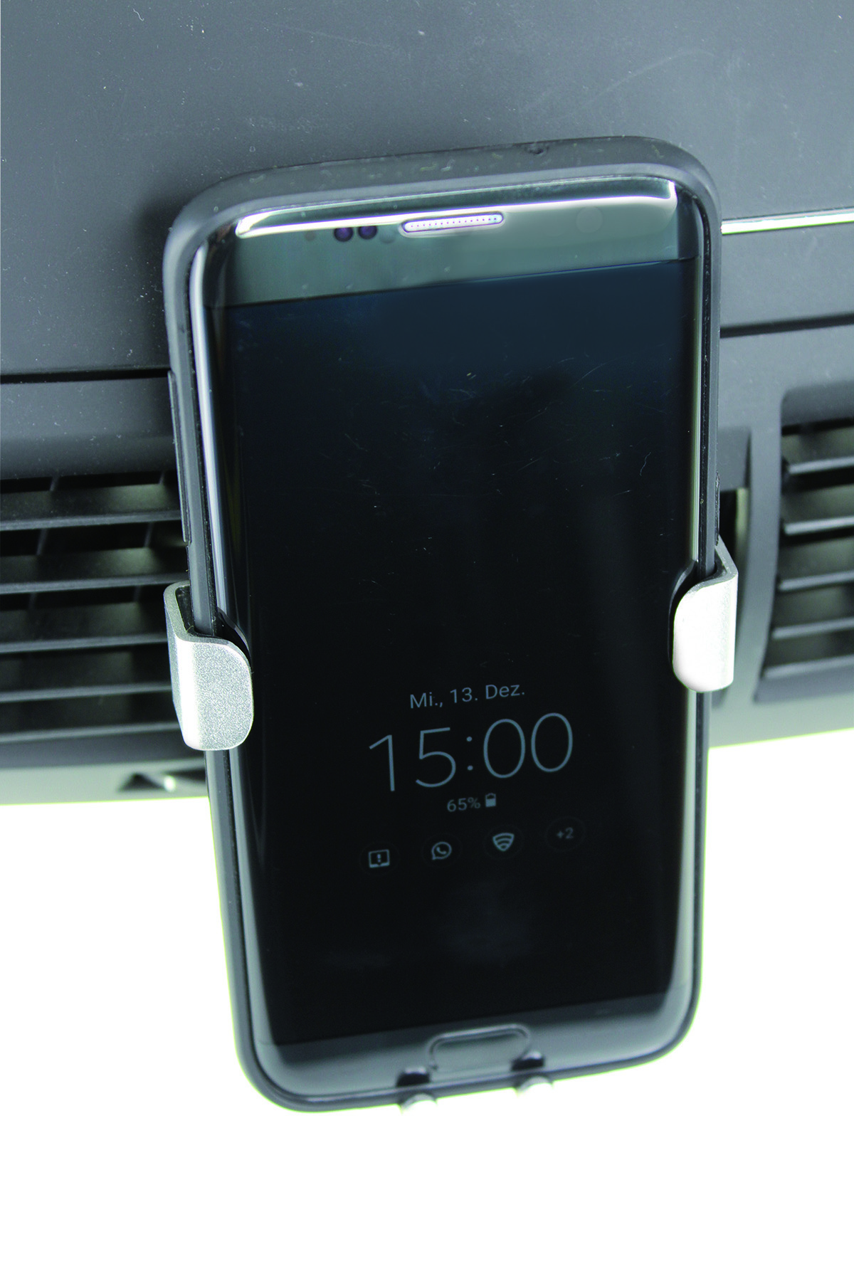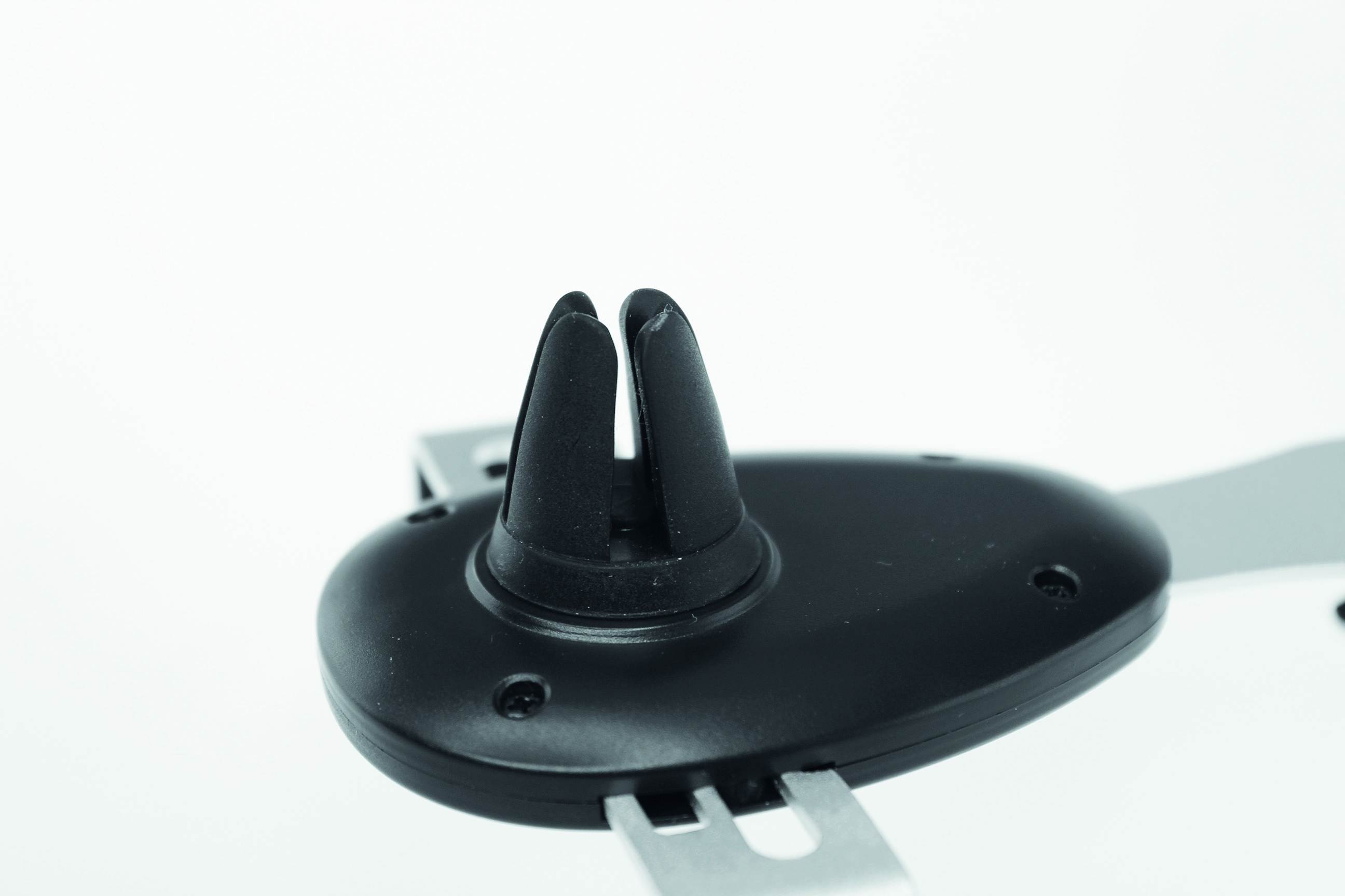 Sichere und starke Halterung für das Mobiltelefon zum Anklemmen an den Lüftungsschlitzen des KFZ. Schwerkraft-Federmechanismus, Einhand-Fixierung, VPE 50. Designkarton
