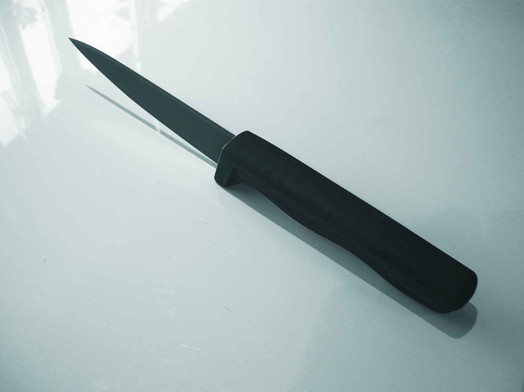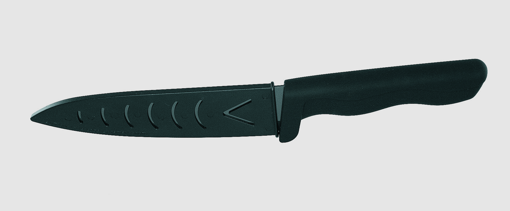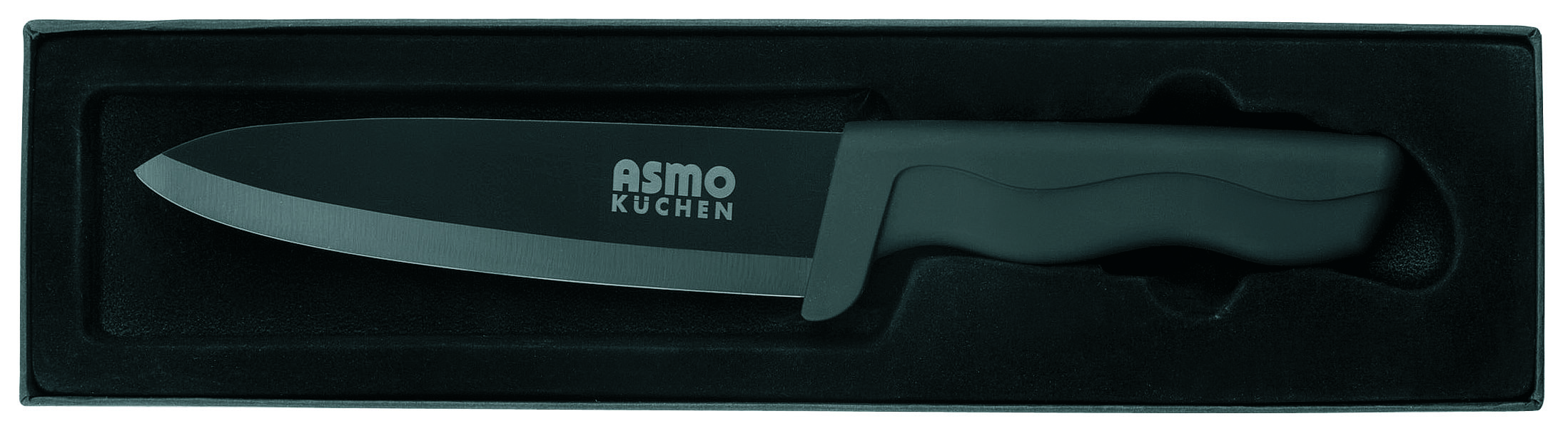 Großes Küchenmesser mit edlem Black-Keramik-Finish. 155mm Klinge, VPE 50. Aufstellfunktion, Designkarton