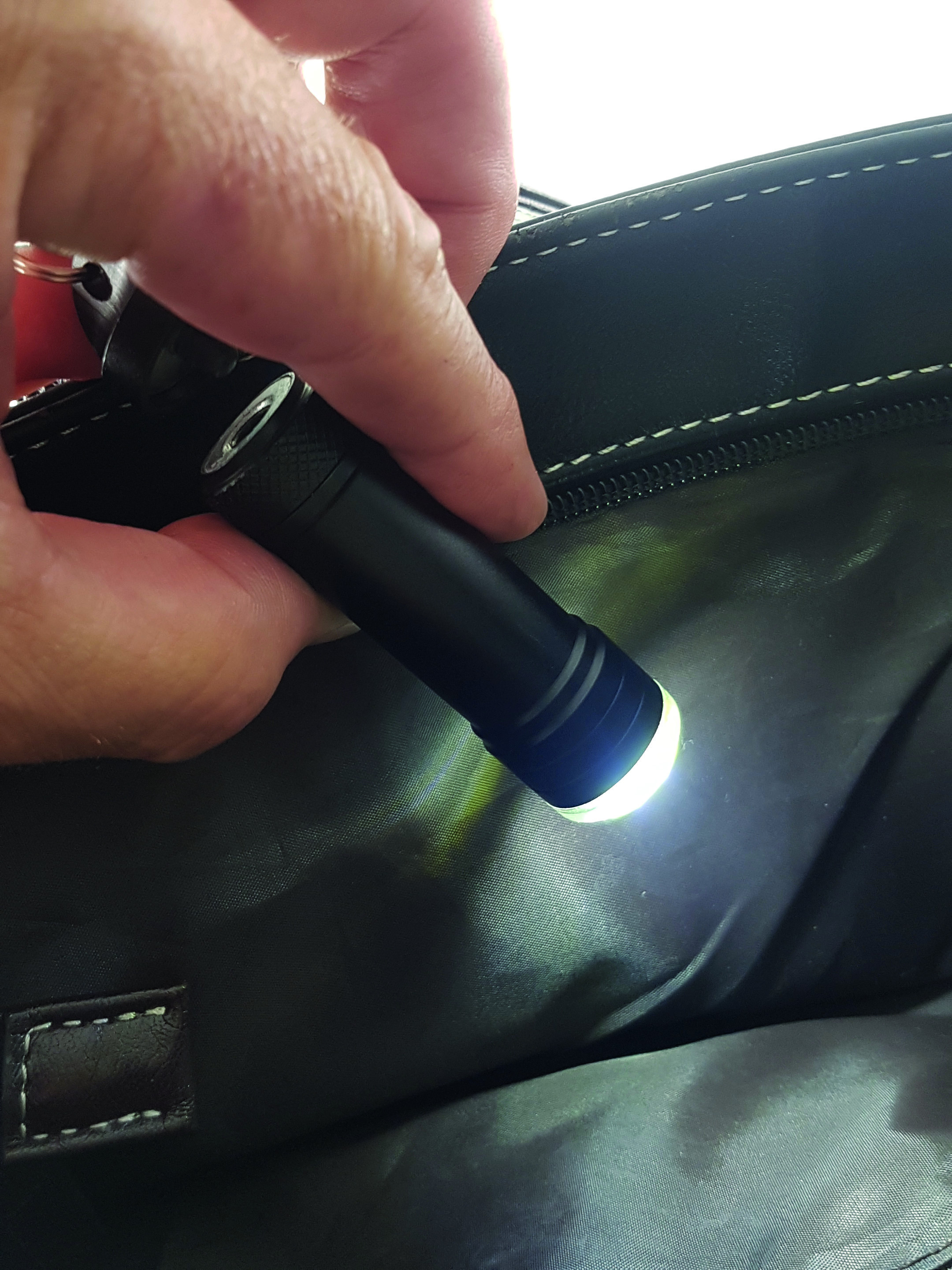 Extrem kompakte COB Schlüsselleuchte für eine optimale Ausleuchtung des Nahbereichs. Aktivierung durch Magnetmechanismus, COB LED, VPE 200. Knopfzellen, Designkarton
