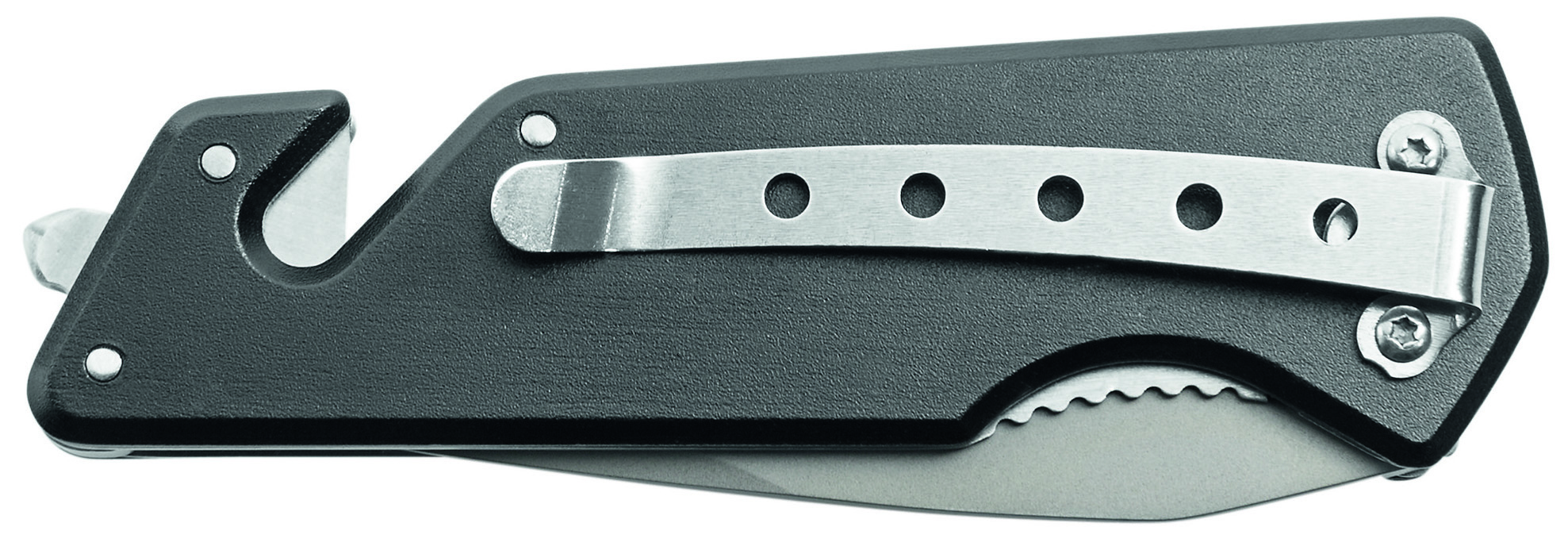 Outdoor-Taschenmesser mit hochwertiger Stahlklinge, Mutternaufnahme in 4 Größen, Gurtcutter und Nothammer. VPE 120. Designkarton