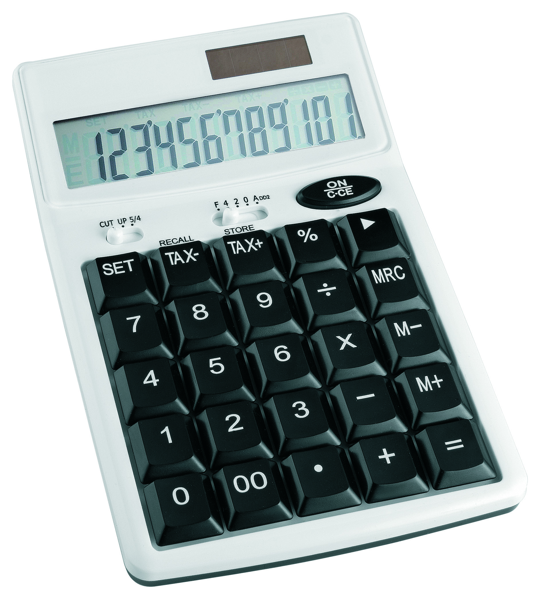 Taschenrechner mit PC-Tastatur, 12-stellig, Tax- und Rundungs-/ Cut-Funktionen. Helles Display, VPE 80. Solar- und Knopfzelle, Designkarton