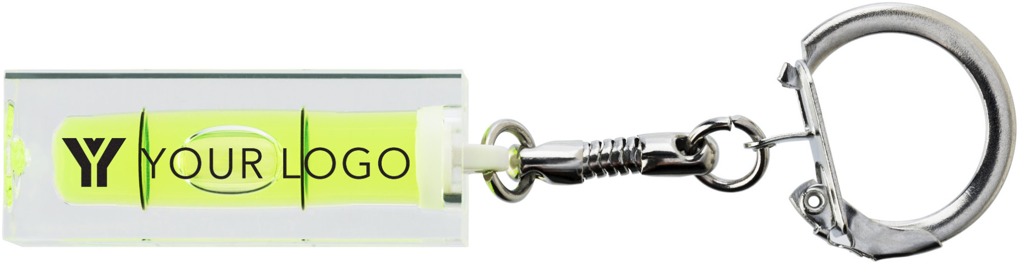 Mini-Wasserwaage aus Kunststoff mit Metall-Schlüsselring.