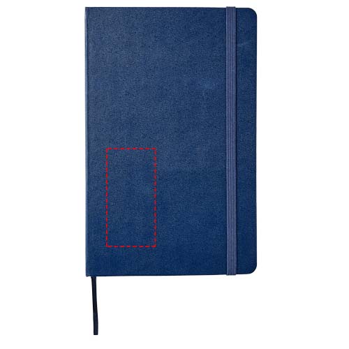 Praktisches Notizbuch im A5-Format. Mit festem PU-Überzug, ca. 80 Seiten cremefarbenem, liniertem FSC Mix zertifiziertes Papier (70 g/m²), elastischem Verschluss und Leseband.