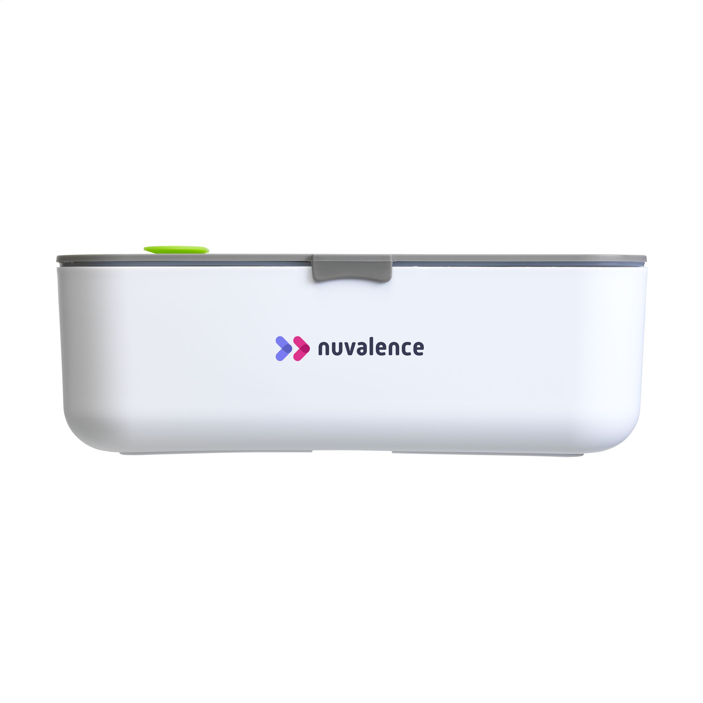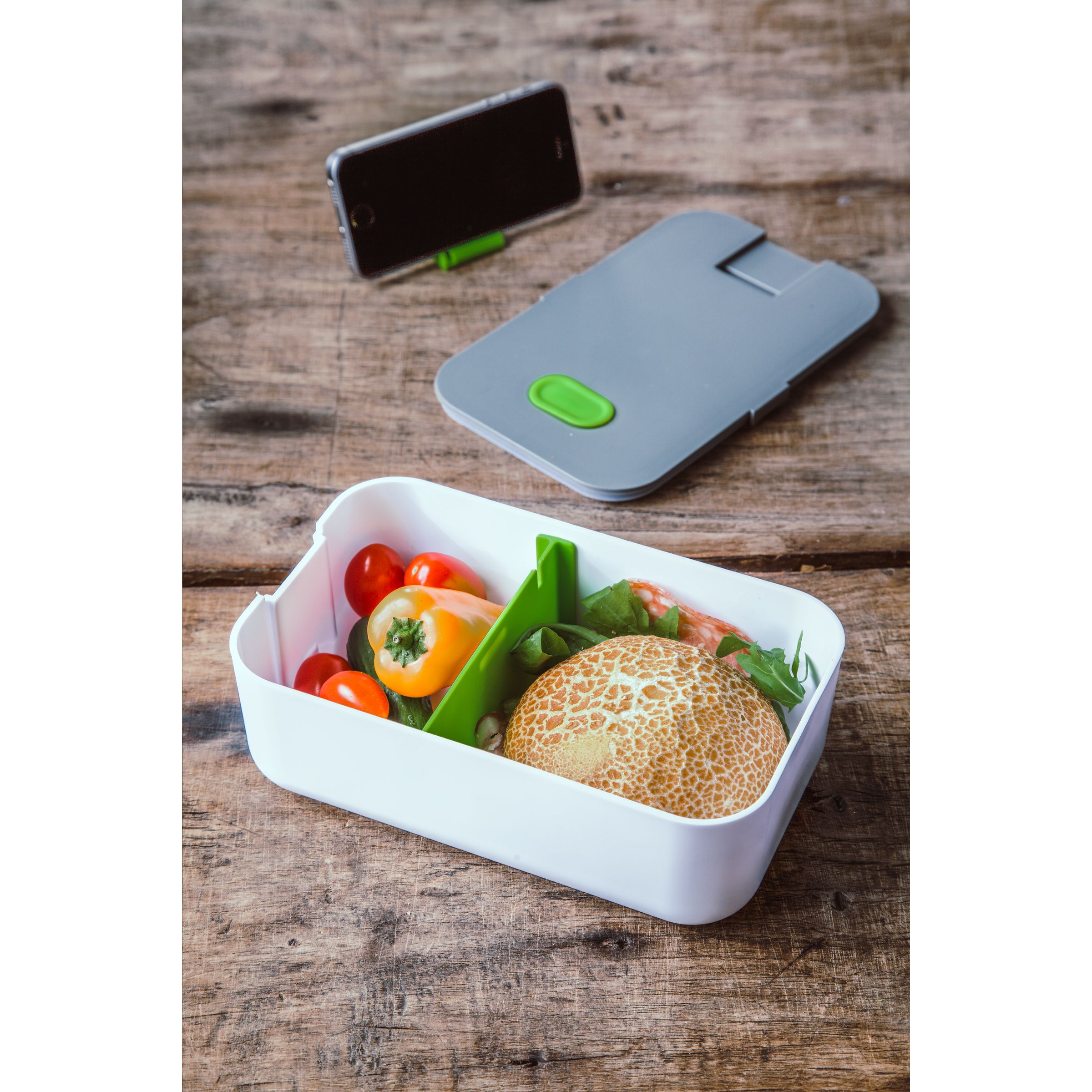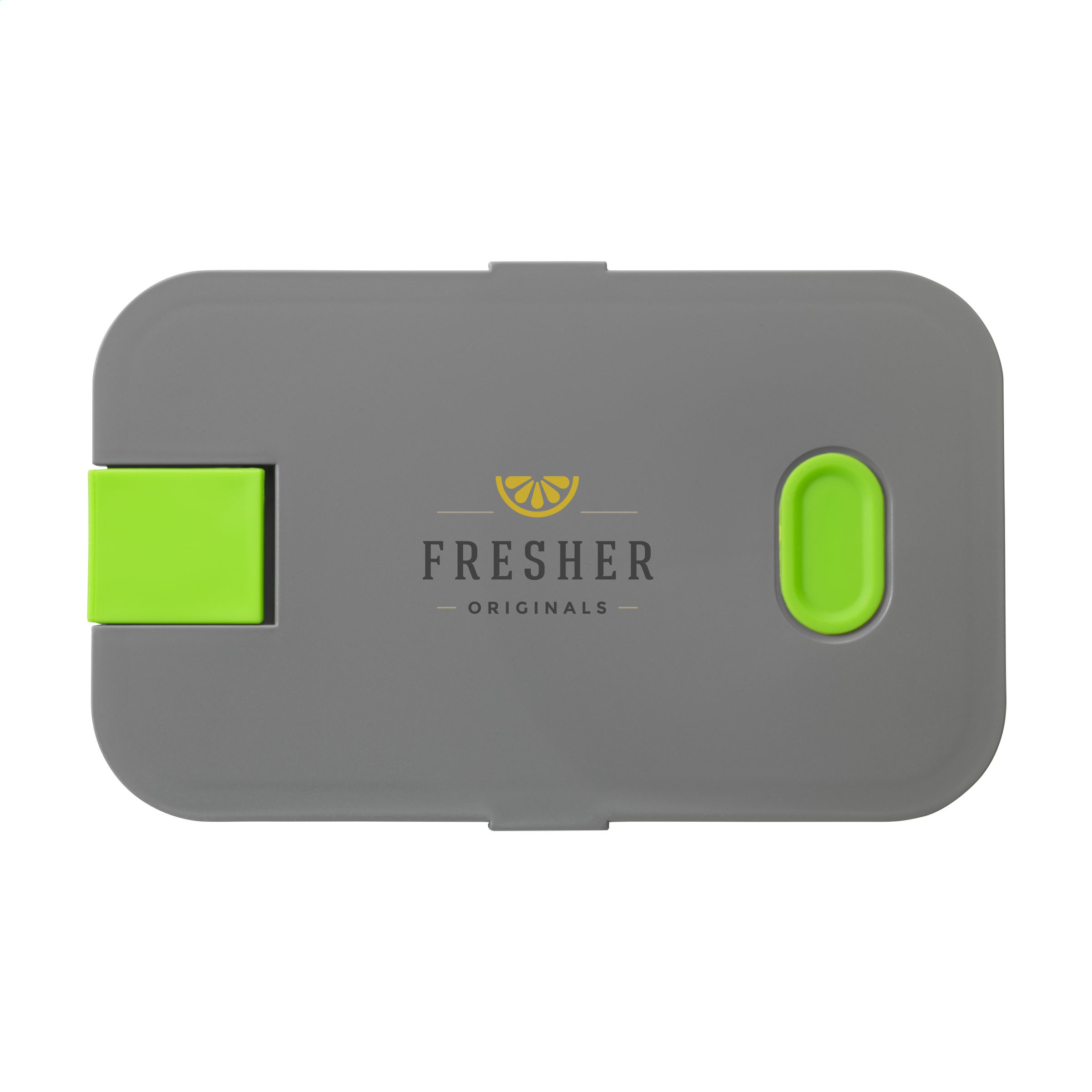Luxuriöse Lunchbox aus hochwertigem Kunststoffmaterial. Der Deckel hat einen Silikon-Dichtungsring, eine Lüftungsöffnung und einen zusätzlichen Schnappverschlusses. Mit abnehmbarem Trennwand. Diese Box ist für den Kühlschrank geeignet und kann daher auch als Frischhaltebox verwendet werden.