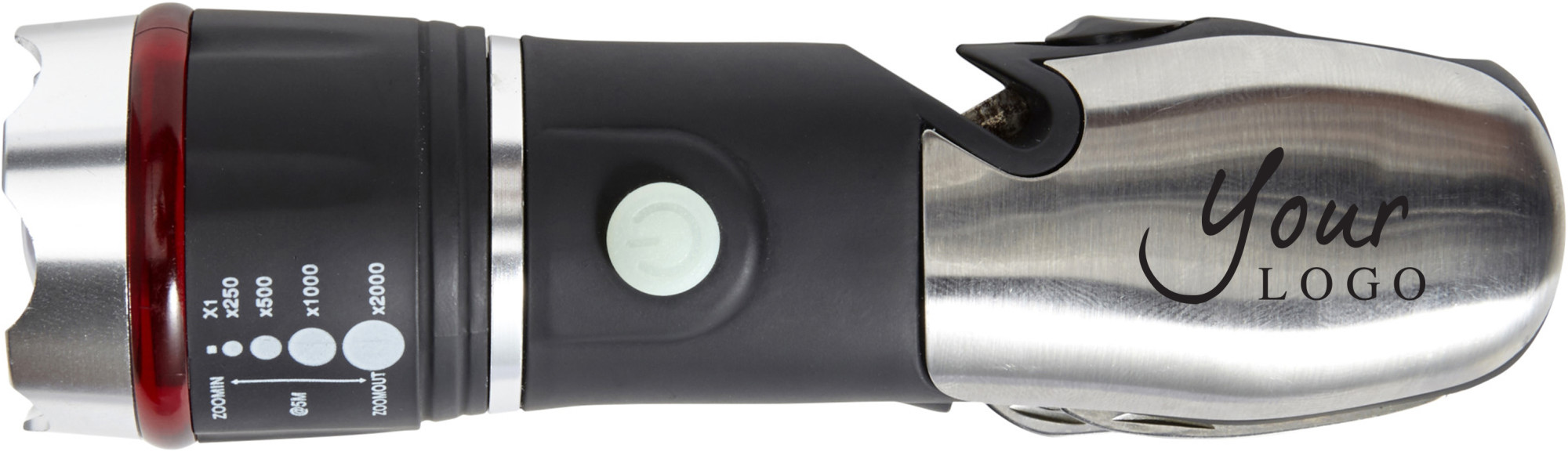 6 Gründe dafür, Multifunktionstaschenlampe aus ABS-Kunststoff/Edelstahl/Silikon Amayah mit Ihrem Logo bei Promowerk-Werbeartikel.com bedrucken zu lassen.
