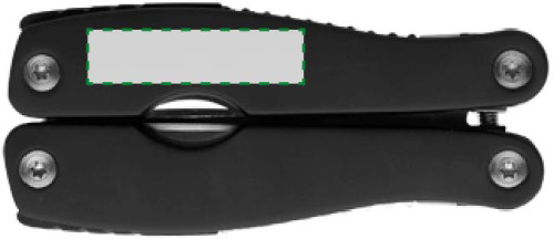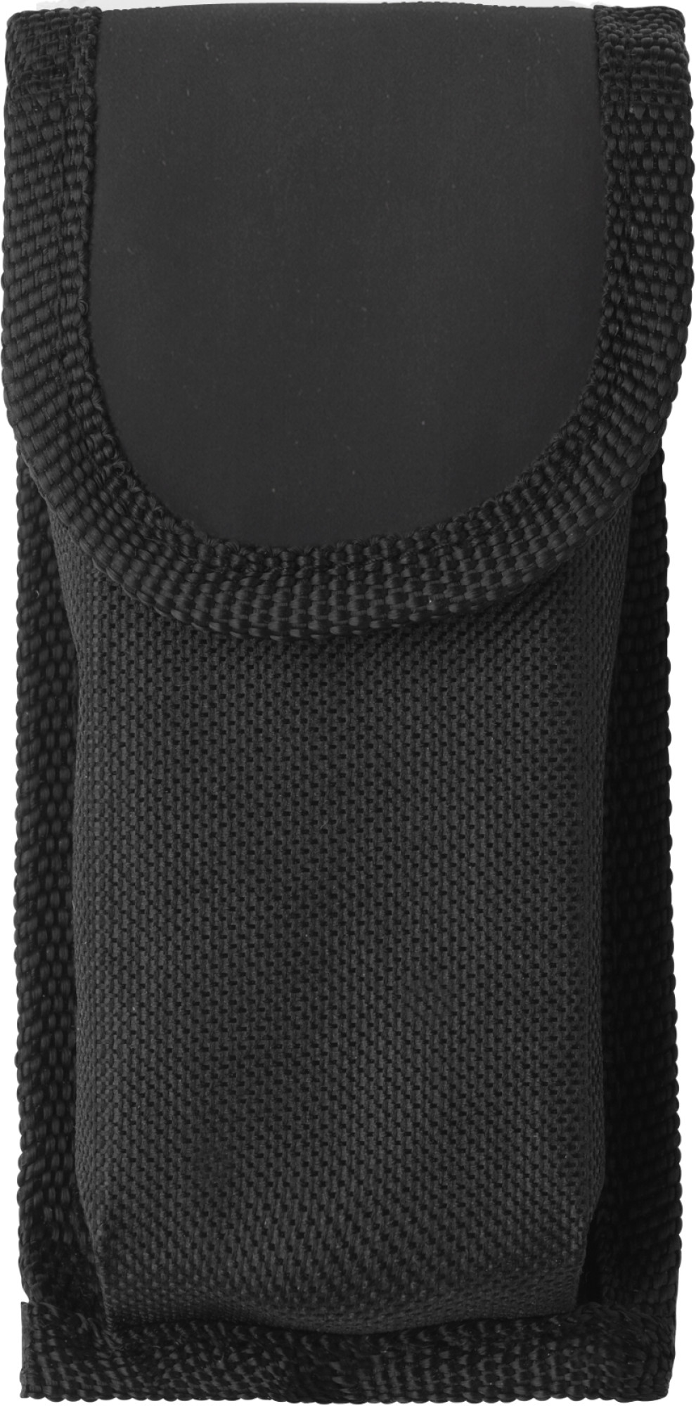Multifunktionswerkzeug aus Edelstahl, mit Kunststoff-Griffen, 10 tlg., im Nylon-Etui mit PU-Label und Gürtelschlaufe.