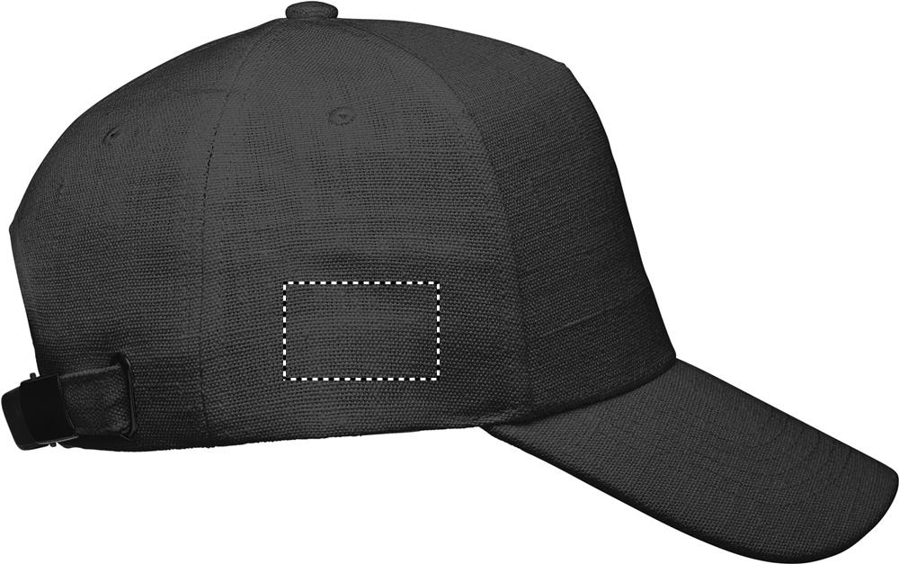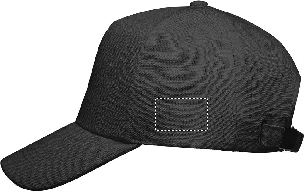 Baseball Kappe. 5 Panele. 100% Hanfgewebe 370g/m². Messing-Schnalle mit Einstecklasche. Fünf farblich abgestimmte, umstickte Belüftungslöcher. Größe 7 1/4.