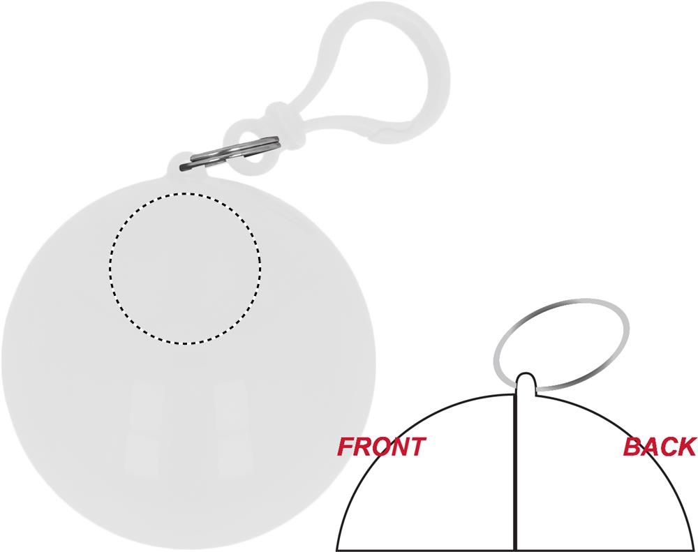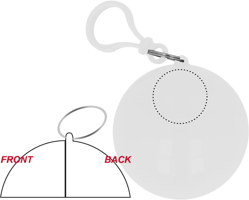 Regenponcho in einer Kunststoff Kugel. Der Poncho ist transparent. Inklusive Karabiner zum Anhängen.