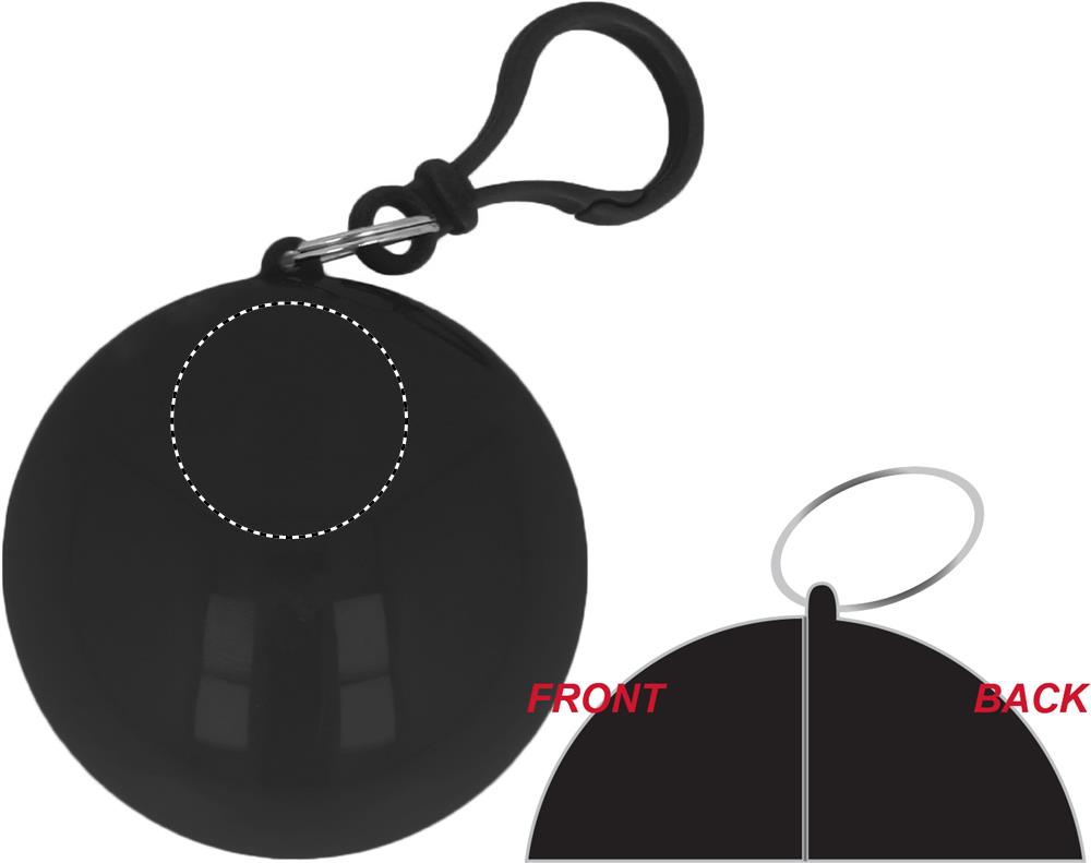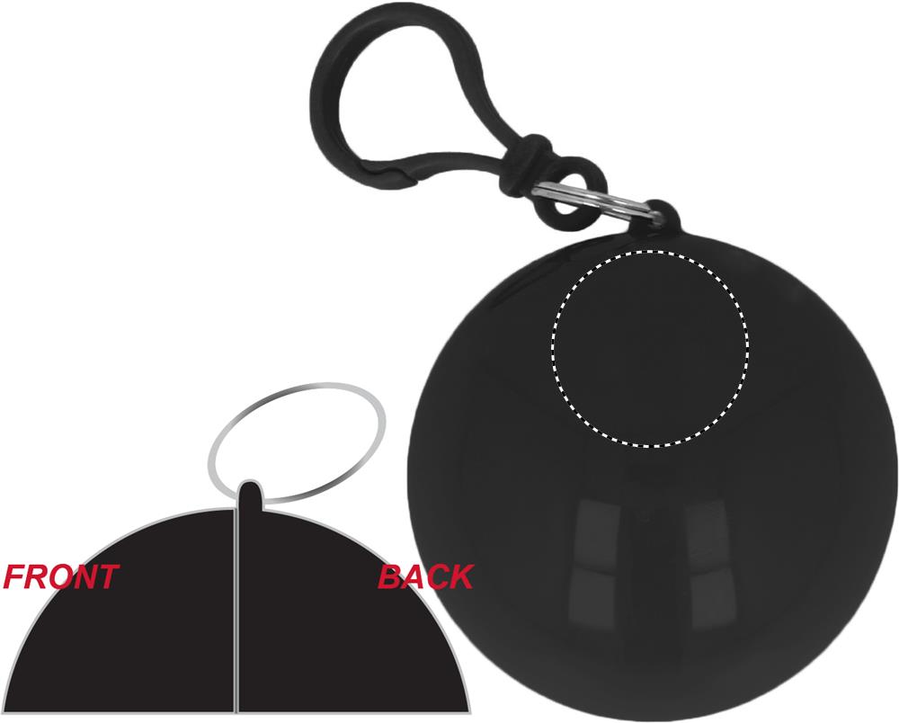 Regenponcho in einer Kunststoff Kugel. Der Poncho ist transparent. Inklusive Karabiner zum Anhängen.