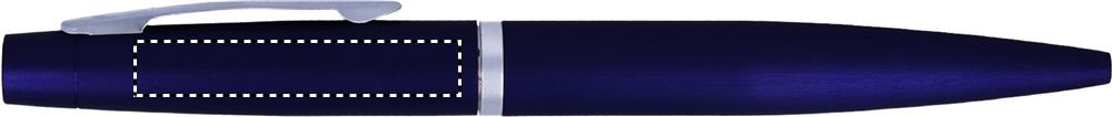 DIN A5 Notizbuch mit Hard Cover aus PU und 72 Blatt (144 Seiten) liniertem Papier. Elastisches Verschlussband und Lesebändchen. Mit passendem Druckkugelschreiber aus Metall. Blaue Tinte.