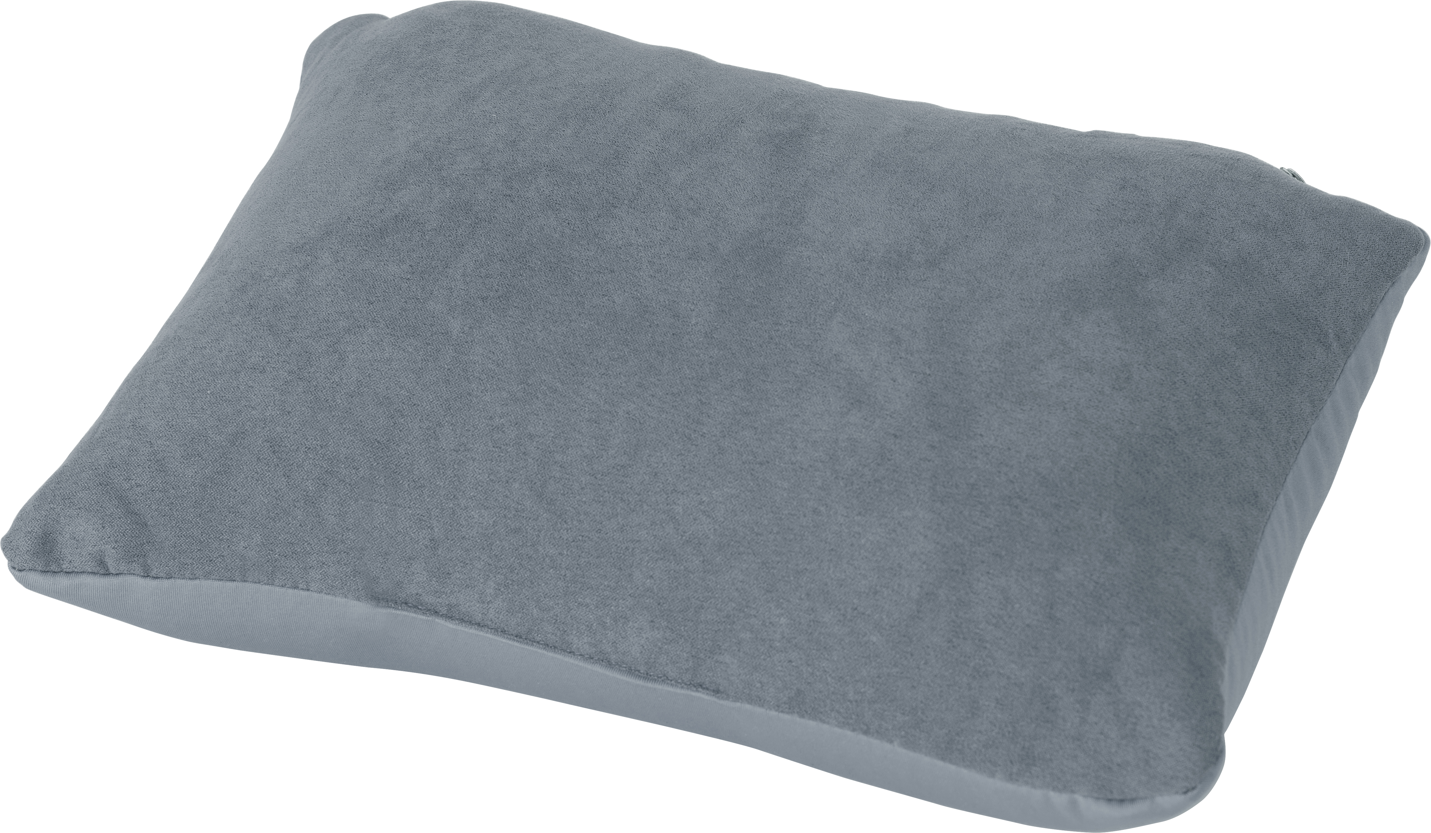 Nackenstütze, zum Kissen faltbar, mit Trageschlaufe und Reißverschluss.