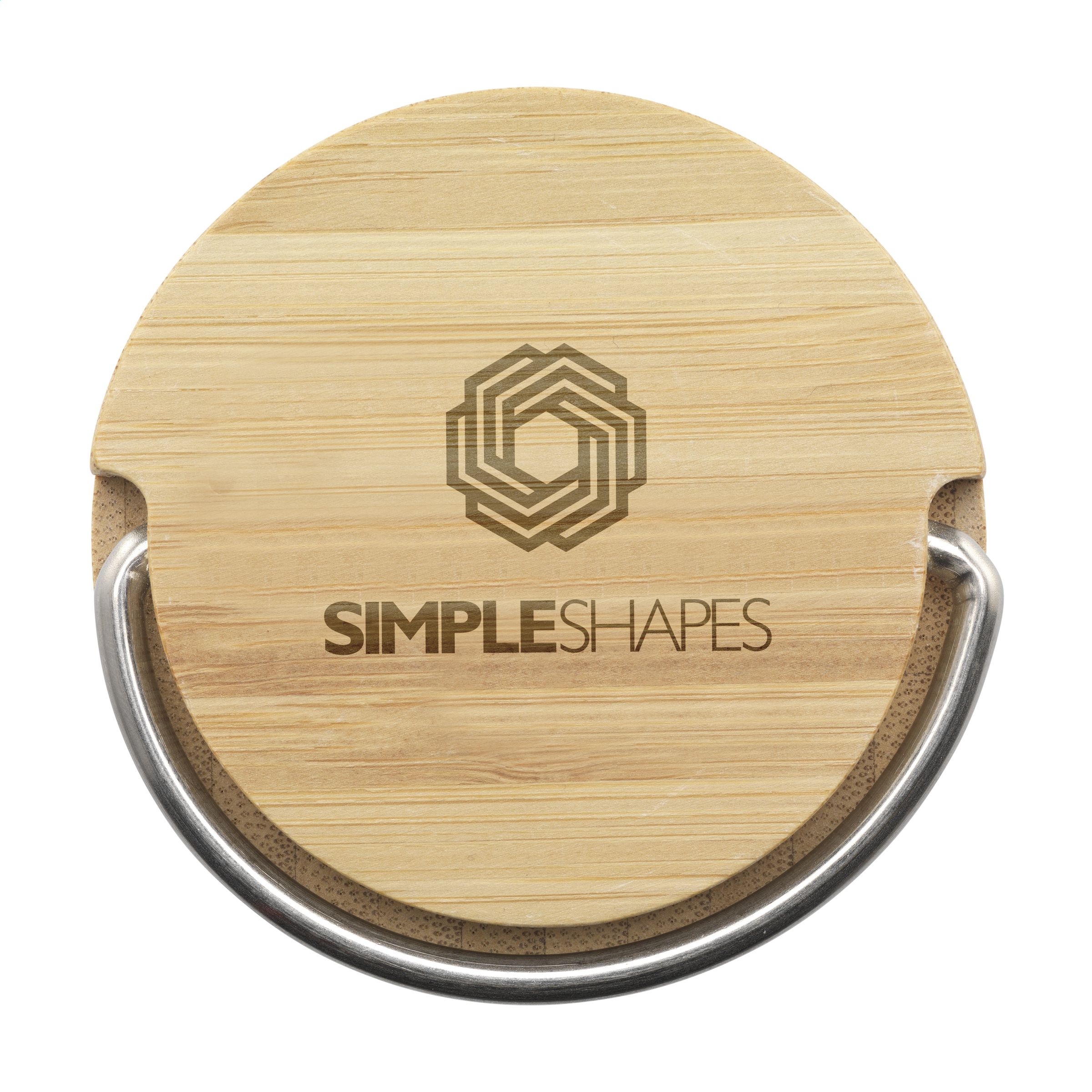 Doppelwandige Flasche aus hochwertigem, transparentem Borosilikatglas. Enthält ein Edelstahl-Ei mit Teefilter für losen Tee, der dem Wasser Geschmack verleiht. Mit Bambus-Schraubverschluss und Edelstahl-Tragegriff. 100% auslaufsicher. Fassungsvermögen 300 ml. Wird einzeln in einem Kraftkarton geliefert.
