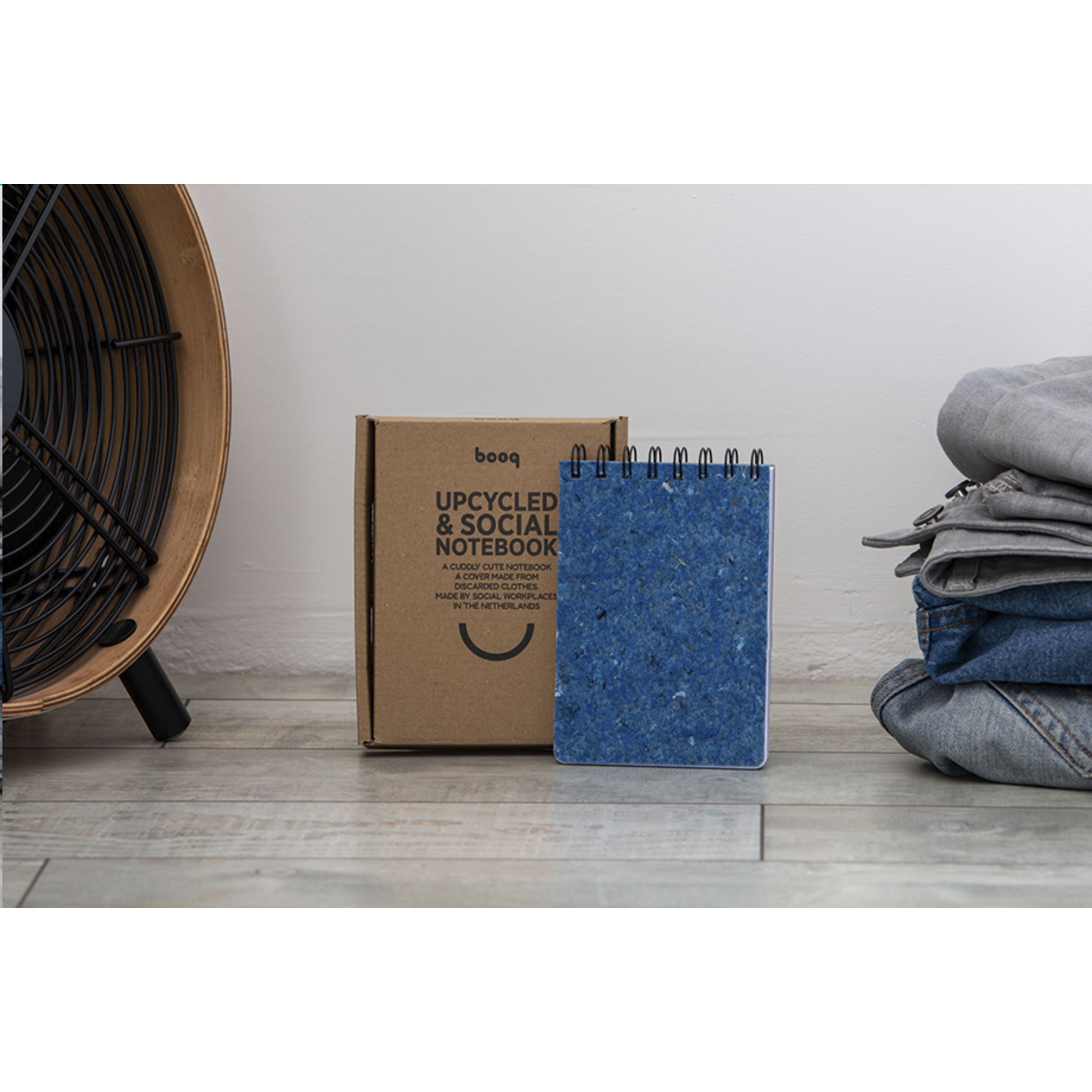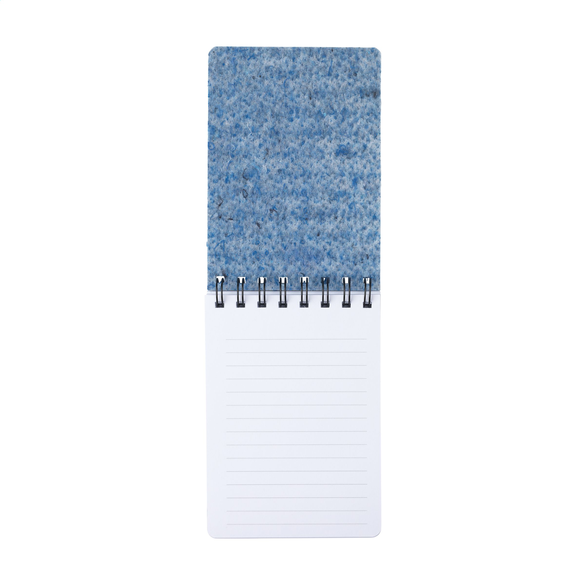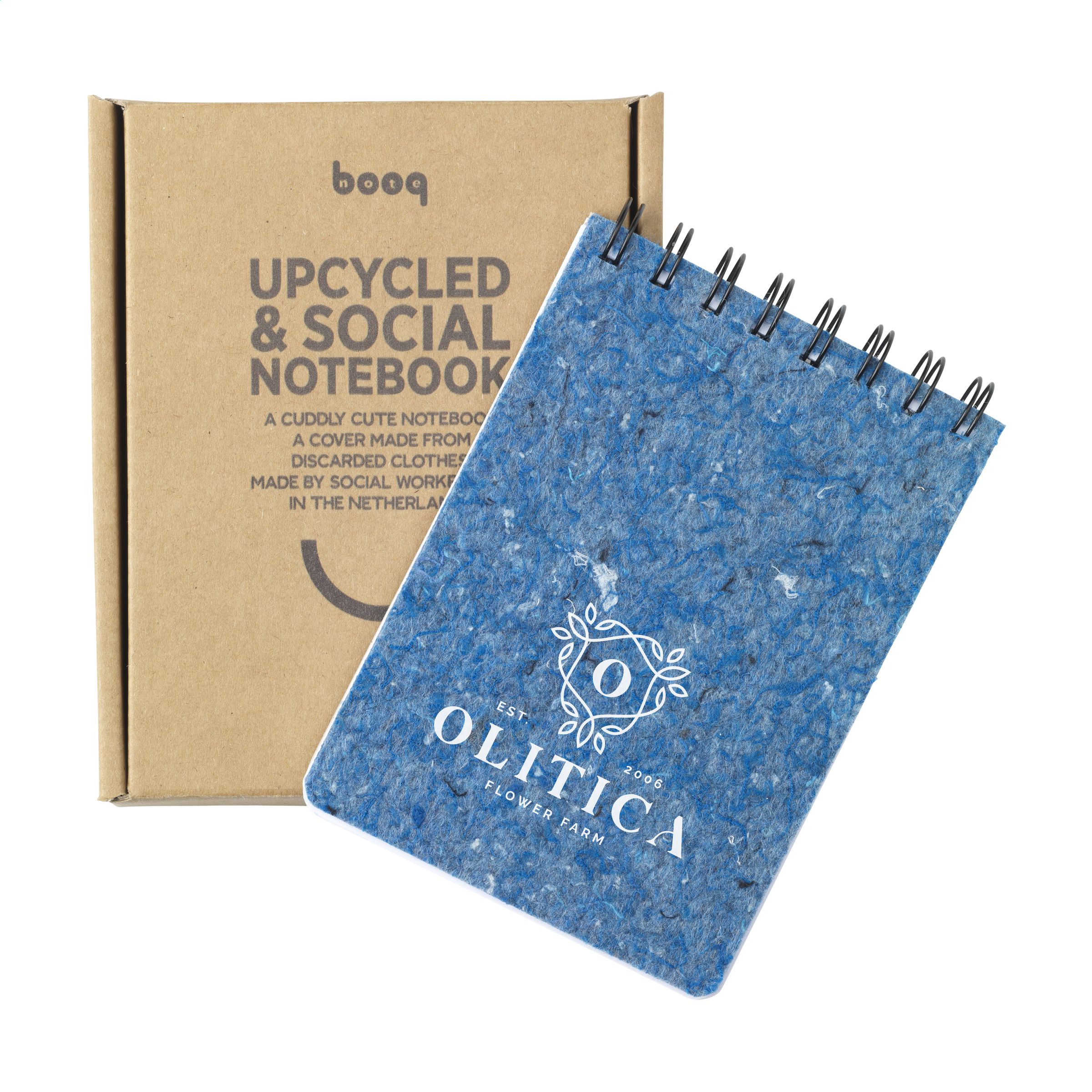 WoW! A6-Notizbuch mit Spiralbindung, ca. 96 Blatt/192 Seiten liniertem, holzfreiem Offset-Papier (90 g/m²) und Umschlag aus upgecycelten Textilien. Alte Textilien werden gesammelt und zu Filz verarbeitet. Filz ist ein Vliesstoff, der durch Komprimieren der Fasern mit Hitze, Feuchtigkeit und Druck hergestellt wird. Sozialarbeitsplätze laserschneiden die Blätter und befestigen sie an den Notizbüchern. Dieses Notizbuch ist ein großartiger Ort, um alle Ihre Ideen aufzubewahren. Optional: Einzeln in einem Kraftkarton geliefert.
