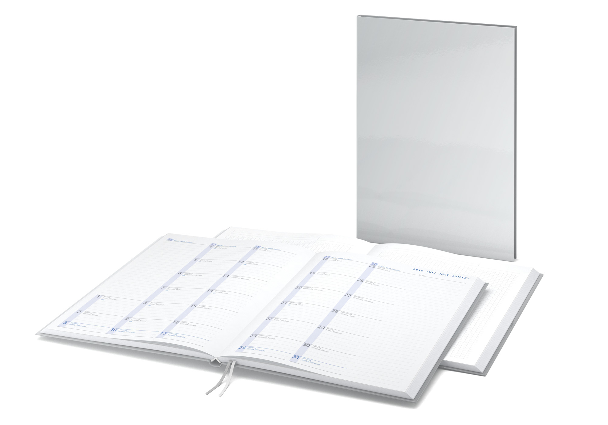 Format: 210 x 297 mm Blattformat; Kalendarium: Hybrid-Timer Note Month:; Deutsch 3sprachig D/GB/F; je Monat 2 Seiten; 25 Monate: Juni 2017 - Juni 2019; Note-Hybrid Week:; Deutsch 6sprachig D/GB/F/I/E/RUS; je Woche 2 Seiten; Umfang: 192 Seiten plus Einstecktasche; Note-Hybrid Month:; 128 Seiten Notizen; 64 Seiten Kalendarium; Note-Hybrid Week:; 128 Seiten Kalendarium; 64 Seiten Notizen; Verarbeitung: Hardcover mit unwattierter Buchdecke; Eckenperforation; 2 Lesezeichen; Kapitalband; runder Rücken; Ausstattung: Notizseiten mit Winkelkaro und Mikroperforation; Einstecktasche; Material: Hochweißes Schreibpapier 90 g/m²; Verpackung: Wellpapp-Verpackung weiß:; Nr. 43 — 350 x 250 mm; Einband: Cover-Star gloss-individuell (auf Wunsch matt-individuell, ohne Mehrpreis); Druck: 4C-Quality Digital inklusive; Werbefläche: Kompletter Einband;