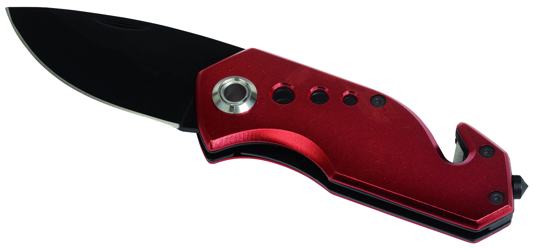 Notfallmesser DISTRESS : mit integriertem Gurtschneider, Nothammer, Klinge, Befestigungsclip, in Geschenkbox Geschenkbox