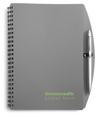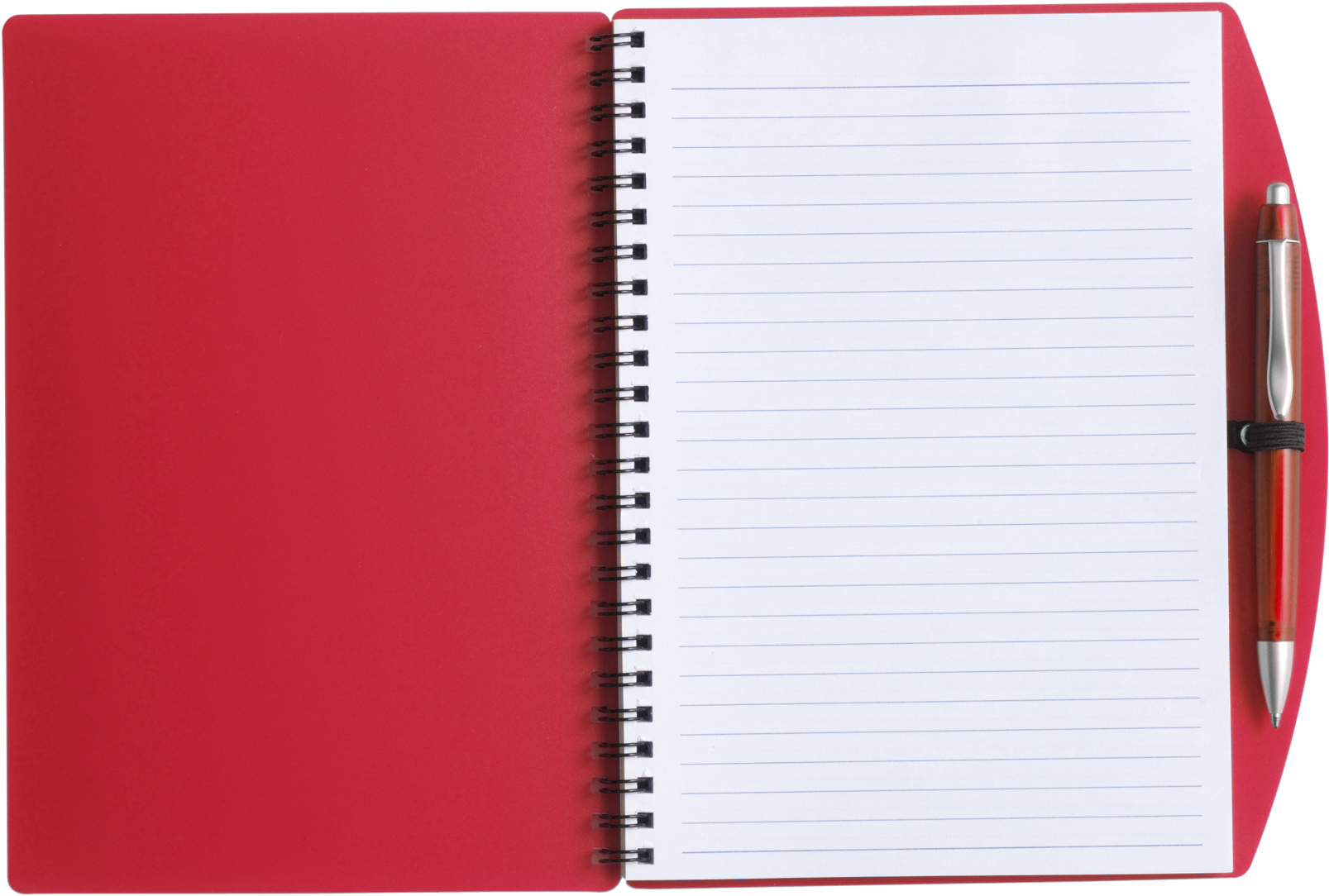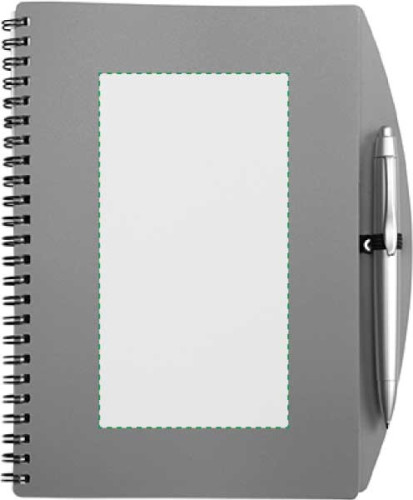 Notizbuch aus Kunststoff, ca. DIN A5-Format, mit 65 linierten Blättern und farblich passendem Kunststoff-Kugelschreiber.