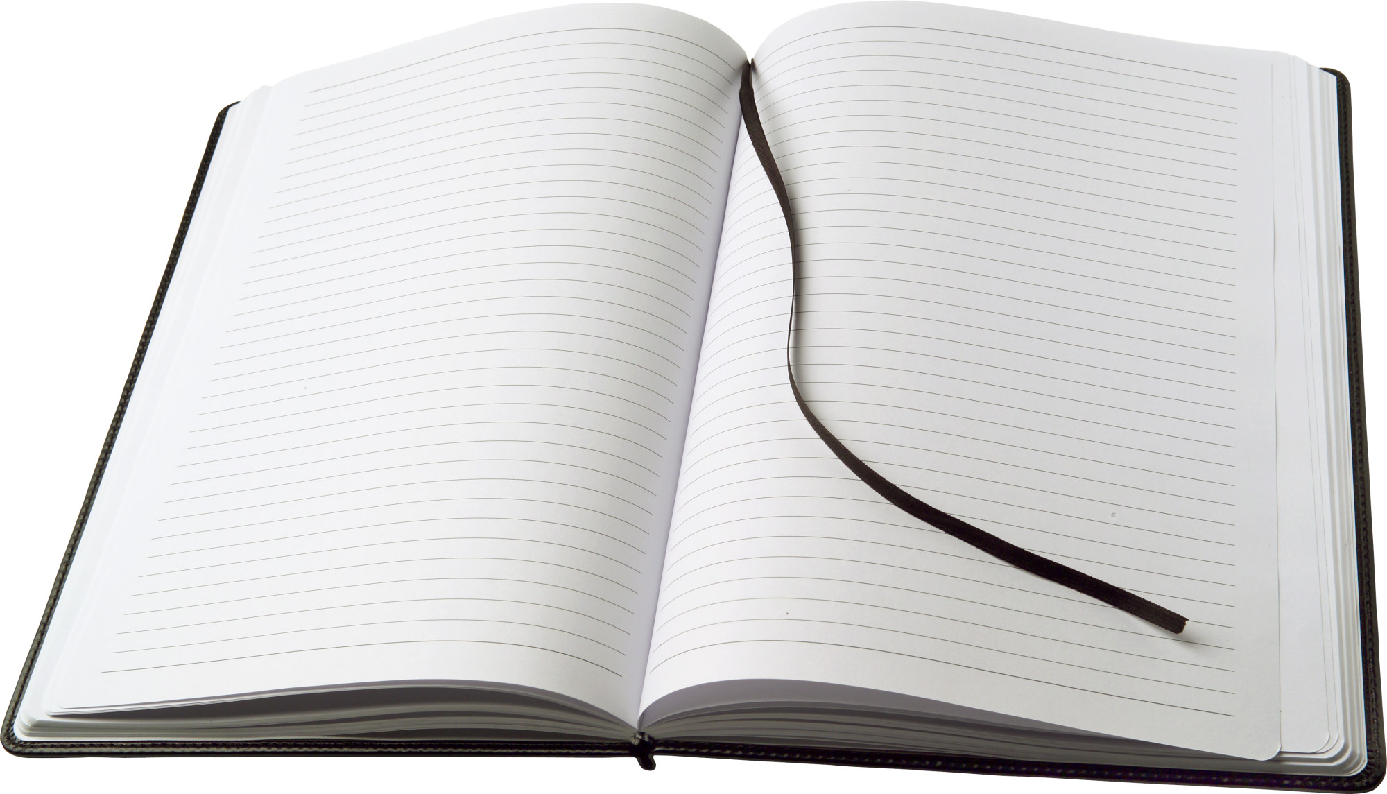 Notizbuch mit PU-Umschlag, ca. DIN A4-Format, mit 100 linierten Blättern, inklusive Lesezeichen.